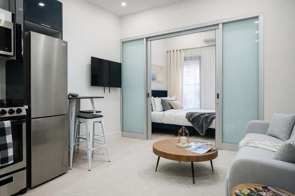 Step into your perfect 1-bedroom apartment located in the heart of the Upper East Side on 78th St. and 1st to 2nd Ave, with easy access to the 4, 5, 6, and Q subway lines. This is the place to be! Your apartment comes fully furnished with all the amenities needed to make your stay unforgettable, including a fully functional kitchen, a modern bathroom with a standing shower, in-unit washer and dryer, and living space with high-speed internet and a 50" TV. Needless to say, you can just bring a suitcase, kick back, and feel at home. This 1-bedroom apartment is renovated and furnished, offering a comfortable and homey feel. It includes stylish furniture and a 13-foot ceiling with skylight, which provides an open and airy feel to the space. The apartment also features a washer and dryer in-unit, making it easy to do laundry during your stay. Additionally, you receive free high-speed wireless internet, making it easy to stay connected. The space has been designed with great attention to detail, ensuring it is not only beautiful but also functional and comfortable. Overall, this 1-bedroom apartment is perfect for those looking for a luxurious and comfortable space with all the amenities needed for an enjoyable stay. Located in the Upper East Side of Manhattan, New York City, this apartment is in a prime and upscale neighborhood known for its beautiful pre-war buildings, tree-lined streets, and proximity to some of the city's most notable landmarks and attractions. The area is home to prestigious museums such as the Metropolitan Museum of Art, the Frick Collection, and the Whitney Museum of American Art. East 78th St is also known for its high-end shopping and dining options, with designer boutiques, luxury retailers, and high-end department stores like Bergdorf Goodman and Saks Fifth Avenue. The neighborhood offers a diverse array of restaurants and bars, ranging from casual to fine dining options. The location is well-connected by public transportation, with easy access to subway lines 4, 5, 6, and Q, making it easy to navigate the city. The area is also close to Central Park, providing a great place to relax and enjoy nature in the middle of the city. [SI]
