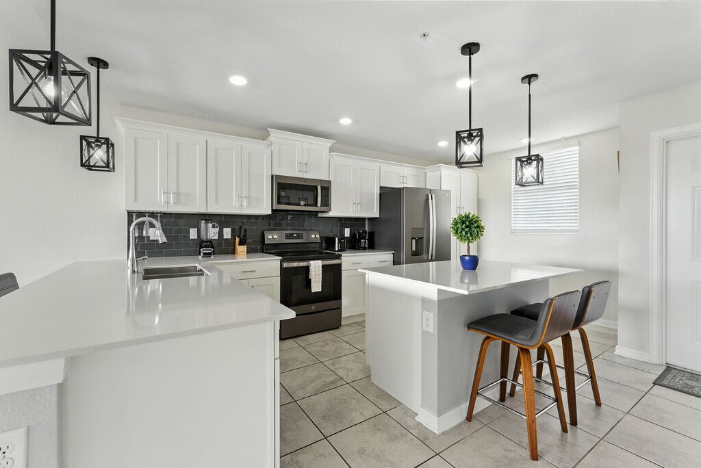Enjoy the perfect Orlando getaway in this 2-bedroom, 2-bathroom apartment for up to 6 guests. Relax in the spacious living area, cook with ease in the fully equipped kitchen, or unwind on the private balcony with a lake view. Just 10 minutes from Disney in the popular Storey Lake Resort, you'll feel at home with access to pools, a lazy river, a fitness center, and more. With shops, restaurants, and markets nearby, this home offers comfort, convenience, and a memorable stay. Welcome to this spacious 2-bedroom, 2-bathroom condo, designed for comfort and convenience in the heart of Orlando. The open living, dining, and fully equipped kitchen area offers the perfect setting for family meals and relaxation, while the private balcony with a lake view invites you to unwind after a day at the parks. The master suite features a king-size bed for a restful retreat, and the second bedroom offers a bunk with one double and two singles—ideal for kids or extra guests. Each bedroom has its own bathroom for added comfort. A laundry room with washer and dryer, free Wi-Fi, and complimentary parking ensure a stress-free stay. Located in the centrally positioned Storey Lake Resort, just minutes from Disney, you'll enjoy world-class amenities including pools, a lazy river, a fitness center, and more. With modern comforts and plenty of space for up to 6 guests, this condo is the perfect home base for your Orlando adventure. Nestled within Storey Lake Resort, this prime location places you only 10 minutes away from Orlando's major attractions and theme parks, including Walt Disney World, Universal Resort, and SeaWorld. The resort itself boasts an array of family-friendly amenities, from a tiki bar to an expansive resort-style pool with slides and a relaxing lazy river. Sports enthusiasts will appreciate the sports court and mini-golf, while those seeking adventure can enjoy kayaking. A well-equipped fitness center awaits those who want to stay active. Adjacent to the buildings, you'll discover an inviting pool, and within the resort, two clubhouses offer additional options for entertainment. Among these, a themed pirate pool is a highlight, sure to delight kids and families. Moreover, the resort's strategic location just off Osceola Parkway ensures easy access to an array of restaurants, shopping centers, and supermarkets, all reachable within a mere 5-minute drive. Your perfect vacation awaits at Storey Lake Resort! Quiet hours are between 22:00 and 08:00. A welcome kit with essentials is provided at check-in, and guests are responsible for replenishment during their stay. A detailed digital guide with all the essential information is provided, including house details and local recommendations. Our team is available 24/7, so if you need any assistance or have questions at any time, we're just a message away. [SI]