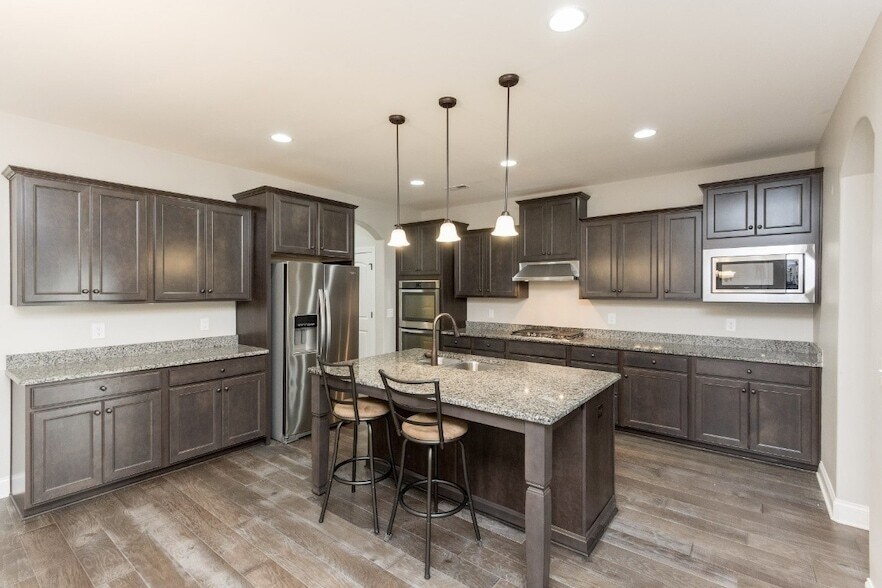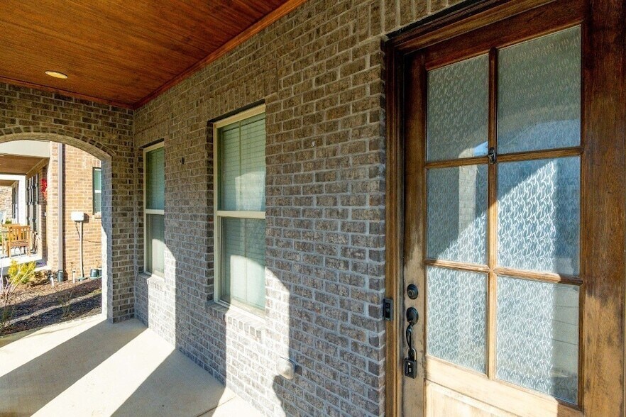 This gorgeous semi-custom all brick featuring an open floor plan, large gourmet style kitchen with gas stove, double oven, and more. Primary suit with two walk-in closets, trey ceiling and a beautiful primary bath with tiled shower & garden tub and crown molding galore. Large laundry room plumbed for sink, two sitting areas great for those that work at home or school or just an extra place to relax. Irrigation system included. Walkable to shops, dining, and entertainment.