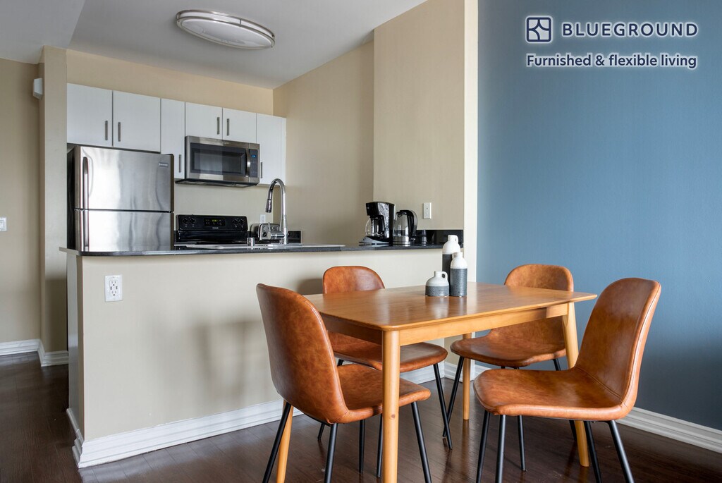 Show up and start living from day one in Los Angeles with this sophisticated one bedroom Blueground apartment. You’ll love coming home to this thoughtfully furnished, beautifully designed, and fully equipped Wilshire Center home. (ID #LAX1176) The advertised rate of $2,750/month is the lowest available price, based on a 11 month(s) and 22 day(s) stay with a move-in date of January 13, 2029. Rates vary depending on the duration of stay, season, and other parameters. For exact pricing and additional pricing components, please visit our website and enter your desired move-in and move-out dates. The rate is applicable when billed upfront; it can be higher if billed in multiple payments. Brokers are welcome to reach out. Were you looking for an unfurnished lease? Try Blueground instead and upgrade from unfurnished to furnished living: - Furnished at rates comparable to unfurnished - No setup or furniture costs - save thousands - Move-in ready - save time, just bring your suitcase Designed with you in mind Thoughtfully designed with bespoke finishes, modern furnishings, and a fully equipped kitchen, you’ll enjoy that “I’m home” feeling with this Blueground apartment. Whether you’re lounging in your stylish living room streaming the latest and greatest entertainment on the smart TV or premium wireless speaker, or getting some well-earned rest on the superior quality mattress with luxury linens, you’ll fall in love with everything this Wilshire Center apartment has to offer. This apartment also offers in-apartment laundry. Sleeping arrangements King Bed, 70.8in/180cm Amenities Building amenities unique to this one bedroom apartment include an on-site: - Dryer - Elevator - Swimming pool - Washing machine - Lounge - Parking - Pets allowed Arrival and ongoing support The entire apartment is yours to enjoy! Throughout your stay, you’ll have access to our Client Experience team through the Blueground App. You can schedule additional cleanings, submit maintenance requests, and view our neighborhood recommendations with just a few taps. We’ll share all details upon confirmation of your stay. Other things to note Building amenities may have an extra cost. This Blueground apartment has flexible lease options, allowing you to book it for one month, a year, or more. Pets are welcome, though weight limits and breed restrictions apply and may incur fees. Parking is offered based on availability and is subject to a fee. We take great pride in ensuring every photo displayed is shot in our own units with our actual furnishings. That said, we regularly refresh our decor and furniture arrangement, which may differ from what’s pictured. [SI]