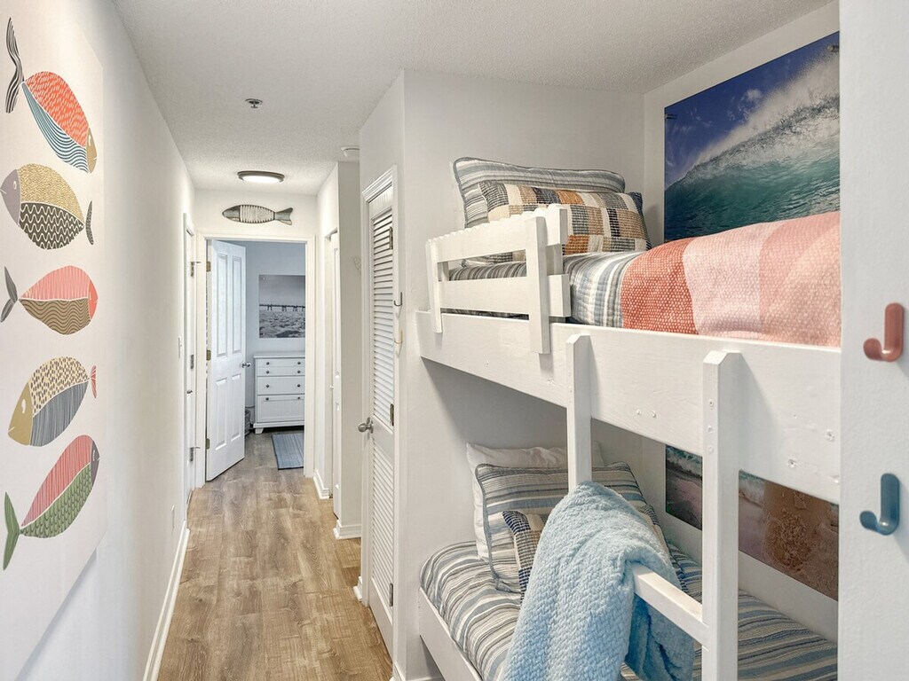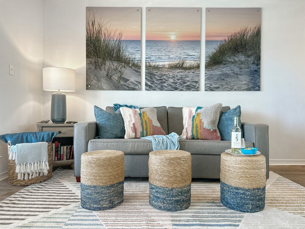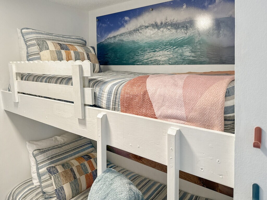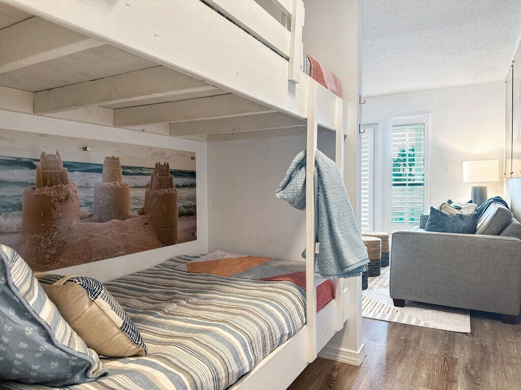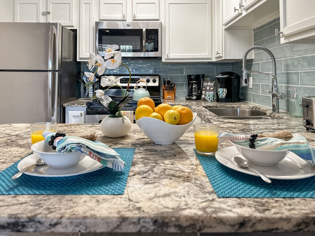 "Sunrise Destin-ation" is the perfect spot for your next Destin getaway! Located on the third floor, this condo offers a king bedroom, a twin-bunk alcove, and a queen sleeper sofa, accommodating up to six guests. Enjoy the community pool just steps from two gorgeous public beach access points directly across the street. This freshly remodeled condo features an open floor plan living area with a cozy living room, a dining area that seats four, and a kitchen island with two additional seats. The fully stocked kitchen includes a suite of appliances, a microwave, dishes, cutlery, pots and pans, a crock pot, blender, toaster, and griddle. Coffee enthusiasts can choose between a drip coffee maker with a reusable filter or a Keurig machine. The washer and dryer are conveniently located in the hallway at the entryway. The community offers a seasonally heated and gated pool, a community charcoal grill with a picnic area available year-round, and a spacious L-shaped balcony for enjoying Florida sunrises and sunsets. A pack and play, high chair, and children's dining ware are available free of charge. Nestled in the desirable Crystal Beach neighborhood within the Grand Caribbean community, this condo is just a 3-minute walk to a gorgeous public beach access. Enjoy the proximity to wonderful shopping, amazing restaurants, and plenty of public beach access. Explore local favorites like AJ’s Seafood & Oyster Bar, Camille’s for Crystal Beach Coffee, and The Donut Hole for delicious treats. This is a third-floor condo with no elevator access, making it unsuitable for guests with mobility issues. Check-in is after 4 pm, and checkout is at 10 am. No additional guests are permitted beyond the number booked. The property enforces a no-smoking policy, with a full security deposit enforced for odor removal. Trailer, RV, BoxTruck, and Watercraft parking is not permitted, with towing fees applicable for violations. Excessive noise, parties, illegal activity, or disturbances are not allowed, and noise ordinances are in effect at 10 pm sharp. A remote work-friendly environment is provided with a 55" Smart TV for entertainment after a long day.