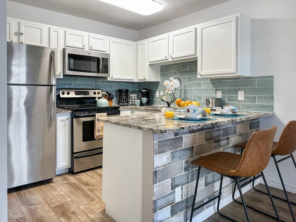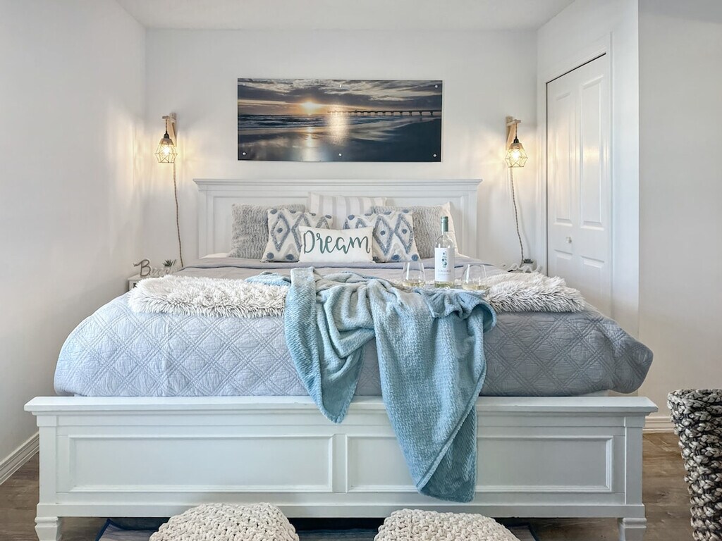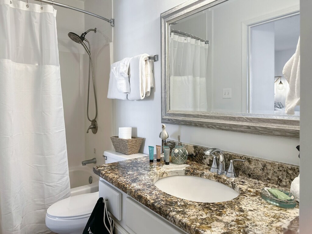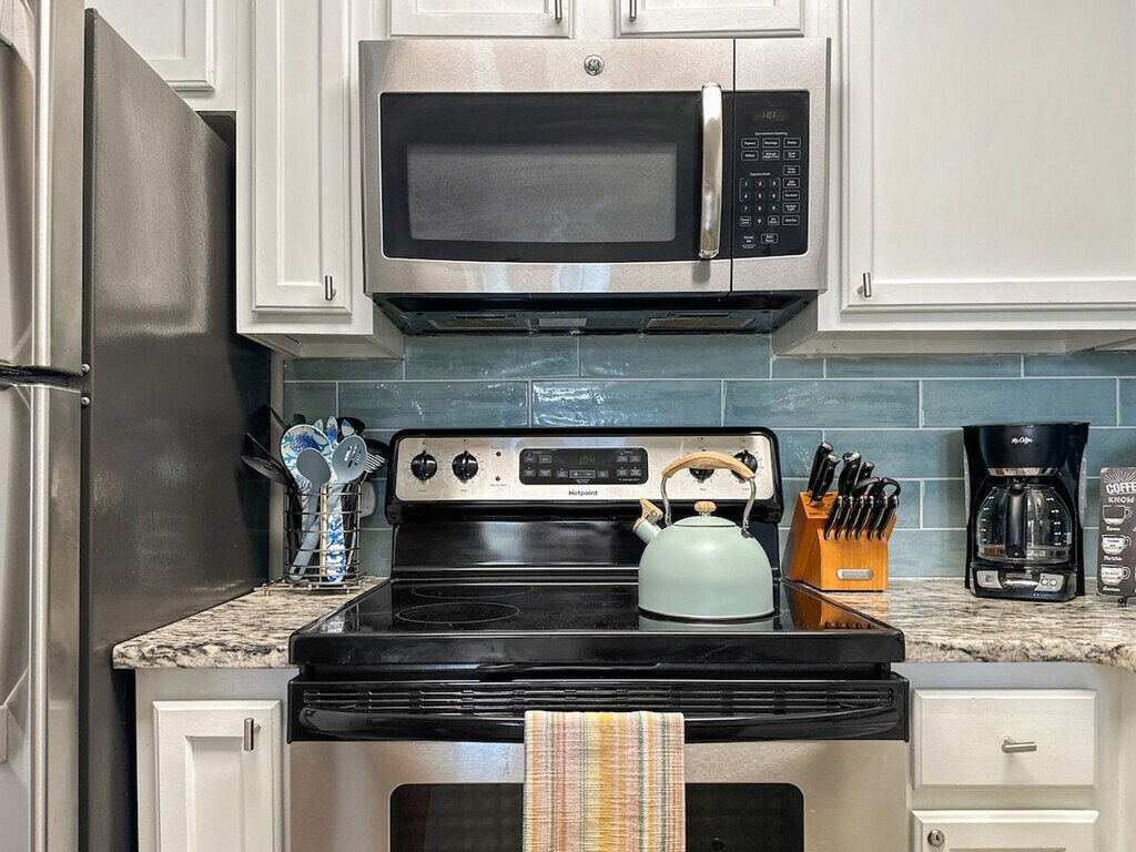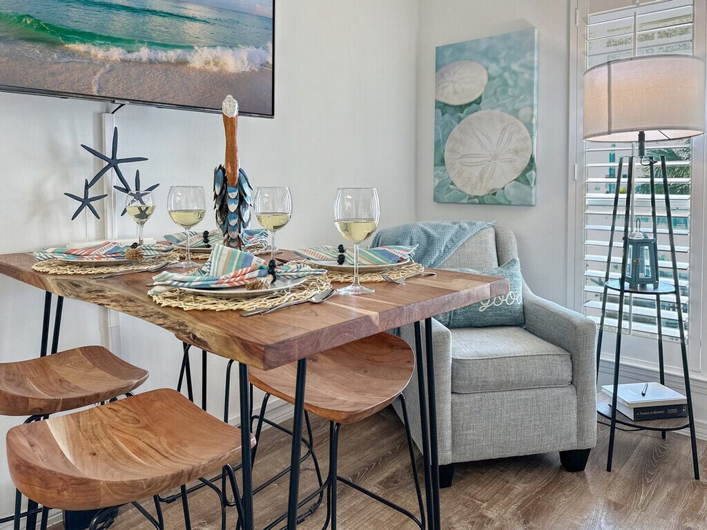 "Sunrise Destin-ation" is the perfect spot for your next Destin getaway! Located on the third floor, this condo offers a king bedroom, a twin-bunk alcove, and a queen sleeper sofa, accommodating up to six guests. Enjoy the community pool just steps from two gorgeous public beach access points directly across the street. This freshly remodeled condo features an open floor plan living area with a cozy living room, a dining area that seats four, and a kitchen island with two additional seats. The fully stocked kitchen includes a suite of appliances, a microwave, dishes, cutlery, pots and pans, a crock pot, blender, toaster, and griddle. Coffee enthusiasts can choose between a drip coffee maker with a reusable filter or a Keurig machine. The washer and dryer are conveniently located in the hallway at the entryway. The community offers a seasonally heated and gated pool, a community charcoal grill with a picnic area available year-round, and a spacious L-shaped balcony for enjoying Florida sunrises and sunsets. A pack and play, high chair, and children's dining ware are available free of charge. Nestled in the desirable Crystal Beach neighborhood within the Grand Caribbean community, this condo is just a 3-minute walk to a gorgeous public beach access. Enjoy the proximity to wonderful shopping, amazing restaurants, and plenty of public beach access. Explore local favorites like AJ’s Seafood & Oyster Bar, Camille’s for Crystal Beach Coffee, and The Donut Hole for delicious treats. This is a third-floor condo with no elevator access, making it unsuitable for guests with mobility issues. Check-in is after 4 pm, and checkout is at 10 am. No additional guests are permitted beyond the number booked. The property enforces a no-smoking policy, with a full security deposit enforced for odor removal. Trailer, RV, BoxTruck, and Watercraft parking is not permitted, with towing fees applicable for violations. Excessive noise, parties, illegal activity, or disturbances are not allowed, and noise ordinances are in effect at 10 pm sharp. A remote work-friendly environment is provided with a 55" Smart TV for entertainment after a long day.