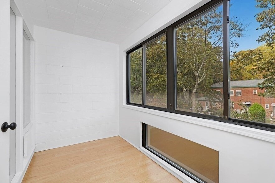 Come check out this beautiful recently renovated condo in the desirable sought-after neighborhood of Brookline Village. This unit is located on a dead-end, tree-lined st bordering Lafayette Pond. The condo is spacious and features 822 SqFt. Upon entry leads into an open concept that includes, freshly painted white walls and ceiling, gleaming blond floating floors throughout, new light fixtures, a sunny and bright living room, dining area, enclosed sunroom, that could be utilized as a third bedroom, fitness room, or office, and an updated kitchen with a new stove. This property has 2 bedrooms, the master bedroom has a walk-in closet perfect for storage, 1 full bathroom, and an abundance of closet space. Amenities are as follows: 1 deeded parking space, a large shared storage room, laundry in-building, a rentable recreation room, and access to The Brook House Outdoor Pool on Tuesdays and Thursdays. .8 of a mile from the Longwood Medical Area, easy access to public transit and highway!