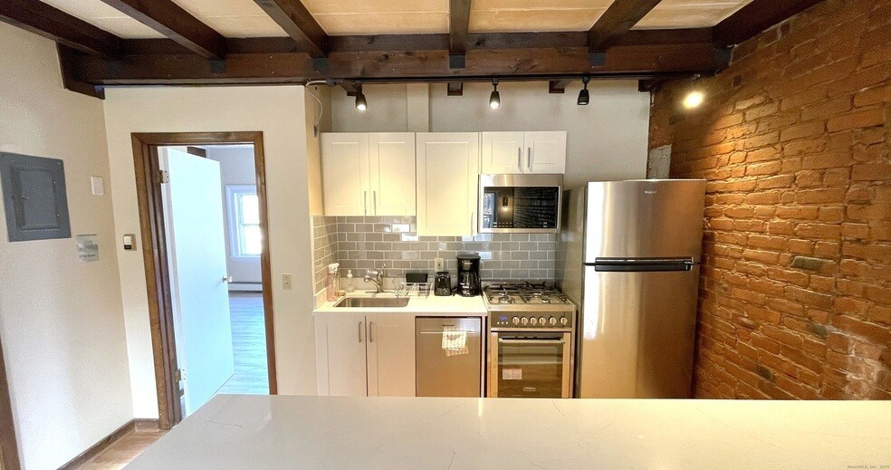 This unique and spacious 4th floor unit has been fully renovated... open floorplan filled with natural light, exposed brick and beams in every room and hardwood floors throughout. Remodeled kitchen with new shaker cabinets, stone countertops and stainless appliances (plus dishwasher). Enjoy views of East Rock, easy access to Yale, downtown, hospital, shops, shuttle, highways, etc. Available January 1, with good credit and 1.5 months security. please ask about pets
