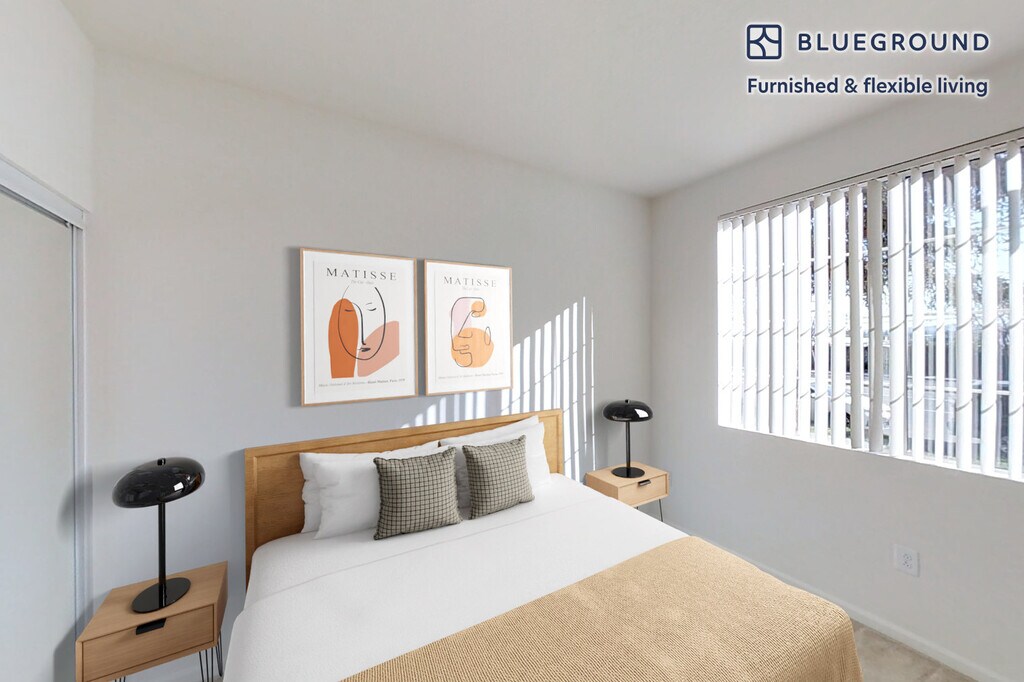 Staged photos of matching layout and similar décor Imagery shows same floorplan and building, and similar décor as we finish photographing this new unit. Be the first to rent! Discover the best of San Jose, with this one bedroom apartment in Farm Drive. It’ll be easy to simply show up and start living in this furnished apartment with its fully equipped kitchen, living room, and our dedicated, on-the-ground support. (ID #SFO8890A) The advertised rate of $3,400/month is the lowest available price, based on a 12 month(s) and 30 day(s) stay with a move-in date of October 8, 2025. Rates vary depending on the duration of stay, season, and other parameters. For exact pricing and additional pricing components, please visit our website and enter your desired move-in and move-out dates. The rate is applicable when billed upfront; it can be higher if billed in multiple payments. Brokers are welcome to reach out. Were you looking for an unfurnished lease? Try Blueground instead and upgrade from unfurnished to furnished living: - Furnished at rates comparable to unfurnished - No setup or furniture costs - save thousands - Move-in ready - save time, just bring your suitcase Designed with you in mind As with any Blueground apartment, you’ll find a thoughtfully designed space complete with beautiful furniture and a fully equipped kitchen in this one bedroom property. And, thanks to our superior quality mattresses, luxury linens, and towels, you can relax knowing you’ll always feel comfortably at home. When you’re ready for some fun, you can take in the San Jose vibes or bring the entertainment to you with the premium wireless speaker or smart TV. This apartment also offers in-apartment laundry. Amenities Building amenities unique to this one bedroom apartment include an on-site: - Dryer - Washing machine - Parking Arrival and ongoing support The entire apartment is yours to enjoy! Throughout your stay, you’ll have access to our Client Experience team through the Blueground App. You can schedule additional cleanings, submit maintenance requests, and view our neighborhood recommendations with just a few taps. We’ll share all details upon confirmation of your stay. Other things to note Photos show same floorplan and building, and similar decor as we finish photographing this new apartment. This Blueground apartment has flexible lease options, allowing you to book it for one month, a year, or more. Parking is offered based on availability and is subject to a fee. Please keep in mind that this is a walk up building. We take great pride in ensuring every photo displayed is shot in our own units with our actual furnishings. That said, we regularly refresh our decor and furniture arrangement, which may differ from what’s pictured.