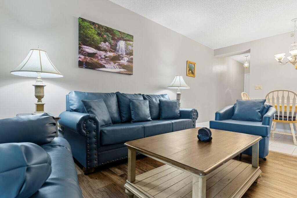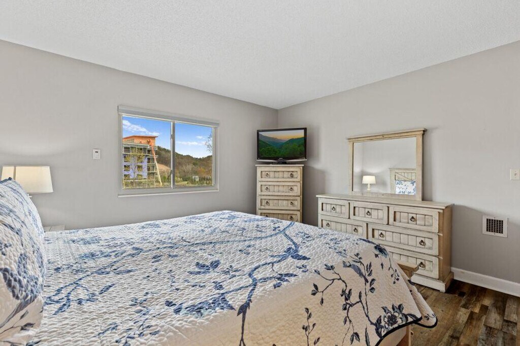 Discover the zenith of modern comfort in this cozy 2-bedroom condominium, set in a prime location just off the parkway. Upon entering, you are welcomed into a spacious and inviting living space adorned with contemporary furnishings and stylish accents. The fully equipped kitchen, featuring a stove, dishwasher, and granite countertops, provides an ideal setting for you to prepare dinner after a day of exploring the area. Enjoy your meals in the dining area or step out onto the private balcony to enjoy al fresco dining with a backdrop of scenic beauty. Beyond the walls of this stunning condo, residents have access to a range of amenities, including a refreshing pool and meticulously maintained communal spaces. This apartment also offers air conditioning, a washer and dryer, a smart TV, and a refrigerator. Free parking space is available at the property. Conveniently located in the heart of Pigeon Forge, you'll find yourself within easy reach of the area's renowned attractions, dining, and entertainment options. Minutes from all attractions in downtown Pigeon Forge, including The Track, Beyond the Lens, Dollywood, Splash Country, Wonderworks, arcades, Hatfield and McCoy Dinner Show, Pirates Voyage, and The Old Mill. Multiple grocery stores such as Food City, Kroger, and Publix are within 5 minutes. As you make your way to the cabin and travel around the area, keep in mind that some of the mountain roads can be steep and winding—that's part of the charm of being in the Smokies! Drive cautiously, especially if it’s your first time in the area, and give yourself a little extra time. Smoking is not allowed inside the cabin and drugs of any kind are not permitted. Any violation of the smoking policy will incur a $400 fine plus the cleaning costs necessary to remove smoke odors from the unit and linens. No pets and no parties are allowed. For same-day late check-ins, you need to get the host's approval before booking. All booking guests must be at least 25 years of age, except children accompanied by their parents, and present during the entire stay. Guest acknowledges and understands that they are financially responsible for any and all property damage that may occur during the rental period, including damage done by pets, which can reasonably be attributed to the rental party's negligence or abuse. There is no refund for weather-related issues or road conditions. Power outages are beyond our control. [SI]