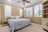 Live in luxury as a Vistancia resident in this stunning, upgraded home that truly has it all. From designer finishes to thoughtful details, every space has been crafted for both style and comfort. The chef's kitchen is a dream come true, featuring a gas cooktop on a spacious four-person island, perfect for preparing meals and gathering with family or friends. Step outside to an expansive backyard designed for entertaining, complete with a built-in BBQ, fireplace, and lush turf all set against a breathtaking view. Whether it's enjoying your morning coffee or hosting a lively get-together, this outdoor oasis is sure to impress. The first-level primary suite is a private retreat, offering generous storage and an extraordinary spa-like shower you have to see to believe. Upstairs, a large loft and oversized guest bedrooms provide plenty of space to unwind after a long day. Plus, this home comes with SOLAR.With access to all that the Vistancia community has to offer, this home is a rare find. Don't miss your chance to call it yours!
