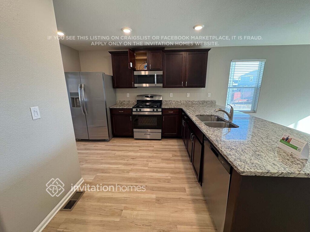 Lease this home and get more from Invitation Homes professional property management. This home comes fully loaded with quality amenities, must-have services, high-end tech and ProCare® professional maintenance. Your estimated total monthly payment is $2408.90. That covers your base rent, $2349.00 + our required services designed to make your life easier: Air Filter Delivery Fee ($9.95), Smart Home with video doorbell ($40), and Utility Billing Service Fee ($9.95). Base rent varies based on selected lease term. This is the house you've been looking for. It's welcoming, stylish and comfortable. A breathtaking entryway and a functional design all come together to make a comfortable interior ready for you to transform it into your ideal home. Luxury vinyl plank flooring runs throughout the home's living area. The living area gives you plenty of space for a dining room and entertainment area. The comfortable kitchen space is complemented with granite countertops, premium cabinets, and stainless-steel appliances. Meal times and household gatherings will be even sweeter in this kitchen space you can make your own. Turn this fenced backyard into your ideal outdoor space. Set outdoor meals on the patio, make room for outdoor plants and decorate as you see fit to make the yard a space that reflects your sense of style. Apply online now! Invitation Homes complies with all applicable law relating to source of income, including CRS 38-12-904(1)(c). If we discover that you are applying with assistance, your credit score will not be factored into your eligibility. At Invitation Homes, we offer pet-friendly, yard-having homes for lease with Smart Home technology in awesome neighborhoods across the country. Live in a great house without the headache and long-term commitment of owning. Discover your dream home with Invitation Homes. Our Lease Easy bundle – which includes Smart Home, Air Filter Delivery, and Utilities Management – is a key part of your worry-free leasing lifestyle. These services are required by your lease at an additional monthly cost. Monthly fees for pets and pools may also apply. Home Features and Amenities: Fenced Yard, Garage, Granite Countertops, Long Lease Terms, Luxury Vinyl Plank, Patio, Pet Friendly, Primary Bedroom on Main, Recessed Lighting, Single Story House, Smart Home, Stainless Steel Appliances, Walk in Closet, W/D Hookups, and professionally managed by Invitation Homes. Invitation Homes is an equal housing lessor under the FHA. Applicable local, state and federal laws may apply. Additional terms and conditions apply. This listing is not an offer to rent. You must submit additional information including an application to rent and an application fee. All leasing information is believed to be accurate, but changes may have occurred since photographs were taken and square footage is estimated. Furthermore, prices and dates may change without notice. See InvitationHomes website for more information. Beware of scams: Employees of Invitation Homes will never ask you for your username and password. Invitation Homes does not advertise on Craigslist, Social Serve, etc. We own our homes; there are no private owners. All funds to lease with Invitation Homes are paid directly through our website, never through wire transfer or payment app like Zelle, Pay Pal, or Cash App. For more info, please submit an inquiry for this home. Applications are subject to our qualification requirements. Additional terms and conditions apply. CONSENT TO CALLS & TEXT MESSAGING: By entering your contact information, you expressly consent to receive emails, calls, and text messages from Invitation Homes including by autodialer, prerecorded or artificial voice and including marketing communications. Msg & Data rates may apply. You also agree to our Terms of Use and our Privacy Policy.