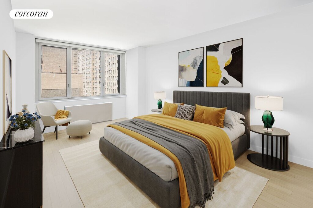 The Sitruk Hania Team is proud to present Residence 16T, a sun-drenched, corner 2-bedroom/2-bathroom home in the prestigious Sheffield Condominium designed by award-winning CetraRuddy Architects. Spanning approximately 1,000 square feet, this beautifully appointed apartment offers a peaceful urban retreat in the heart of Manhattan's iconic Billionaire's Row.With open south and west exposures, Residence 16T boasts stunning city and Hudson River views, oversized windows that flood the space with natural light, and a gracious layout ideal for both relaxing and entertaining.The windowed chef's kitchen is outfitted with elegant Calacatta marble, Poliform glass cabinetry, and top-of-the-line appliances, complete with an exterior venting hood.The spacious corner living room captures glowing sunsets over the river, and the open dining area flows seamlessly into the entertaining space. The primary bedroom features a custom-designed closet and an en-suite Travertine marble bathroom with a soaking tub and vessel sink. The second bedroom enjoys incredible sunlight, with a stylish full bathroom conveniently located nearby.Additional features include:Hardwood floors throughoutCustom blindsThoughtfully built-out closetsCentral heat and airResidents of The Sheffield enjoy one of the most comprehensive amenity packages in NYC - all included in the rent:24-hour concierge and doormanPrivate rooftop health club with year-round indoor poolSauna and steam roomsYoga studio, spinning room, and fitness classesTwo lounges for private eventsChildren's playroomRooftop sundeckLaundry on every floorLocated just moments from Central Park, Columbus Circle, Lincoln Center, and the best of Midtown's shopping, dining, and transportation, Residence 16T offers a rare blend of luxury, space, and unbeatable value.Breakdown of fees:- $20 per tenant to run credit for Landlord's application (due at document submission)- First month's rent + 1-month security deposit due at lease signingDue upon submission of condo lease application which can be found on Domecile's website:- $700 condo lease application fee- $235 condo move-in fee- $120 per applicant condo credit/background check fee- $250 condo pet fee (if applicable)