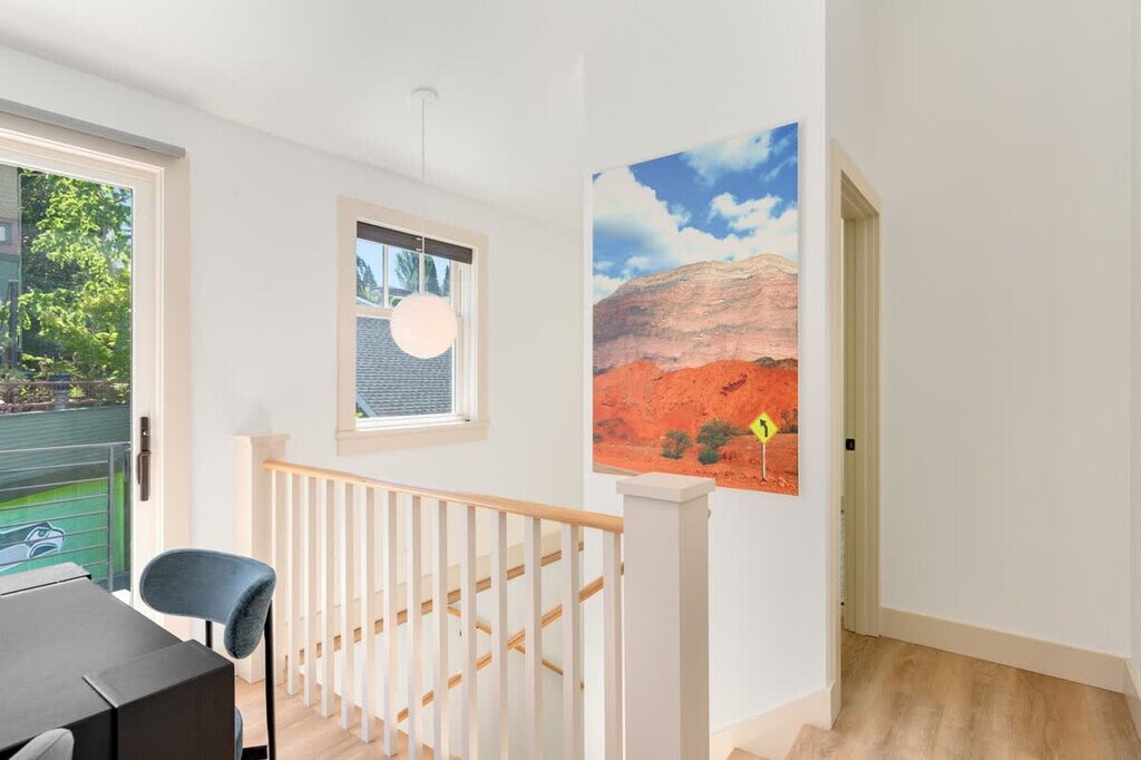 Enjoy a stylish retreat in this modern 1-bedroom DADU located in Seattle's charming Queen Anne neighborhood. Featuring a comfortable queen-sized bed, full bathroom, luxury bedding and towels, and private alley access, this cozy space is perfect for a relaxing getaway. Explore nearby attractions, cafes, and shops with ease. Welcome to your chic and cozy home-away-from-home in the heart of Queen Anne! This newly built 1-bedroom, 1-bathroom Detached Accessory Dwelling Unit (DADU) offers the perfect blend of modern amenities and comfort, making it an ideal choice for couples, solo travelers, or business visitors. This charming home is a sanctuary of modern elegance and comfort, providing premium bedding, luxury towels, exquisite bathroom amenities, and exceptional cleanliness. Enjoy modern conveniences like fast Wi-Fi and Roku streaming devices. The serene bedroom features a queen-sized bed with plush bedding, while the modern bathroom is equipped with all essentials, including a shower, luxurious towels, and complimentary toiletries. The open-concept living area is designed for comfort and style, with a cozy sofa, flat-screen TV, and high-speed Wi-Fi for your entertainment and work needs. The fully equipped kitchen comes with all necessary appliances and utensils, allowing you to prepare your favorite meals with ease. Enjoy the privacy of your own space with alley access behind the main house, providing a quiet and secluded retreat. There is plenty of free street parking at and around the house. There is no parking onsite. Situated on the west side of the picturesque Queen Anne neighborhood, you'll be within walking distance to a variety of local attractions, shops, and dining options. Explore the iconic Kerry Park for stunning views of downtown Seattle and Mount Rainier, visit the Seattle Center, or take a short drive to the bustling Pike Place Market. Queen Anne is famous for its breathtaking views of the Seattle skyline, Elliott Bay, and Mount Rainier. The neighborhood is home to a variety of cultural attractions, including the Seattle Center, which hosts the Space Needle, Chihuly Garden and Glass, and the Museum of Pop Culture. Queen Anne boasts a diverse culinary scene with something to satisfy every palate, from upscale dining to cozy local cafes. With its strong sense of community, Queen Anne is a friendly and welcoming neighborhood, offering everything you need within walking distance, including grocery stores, fitness centers, and public transportation. The property has a strict no-party policy and quiet hours are from 10pm to 8am. Guests are responsible for the conduct of all persons in their unit. No pets are allowed at the house, and there will be a penalty fee if it is determined that there were pets in the home during your reservation period. Smoking of any kind, including vaping, is not allowed in the home, on the deck, or elsewhere on the property, with a penalty fee for violations. Check-in time is at or after 4pm and check-out time is 10am. Early check-ins and late checkouts are based on availability and can be requested one day before, with additional fees possibly applying. The unit is located above the garage for the house, and garage parking is not included with the unit. A daily electricity allowance of 75 kWh is included, with any excess billed at local utility rates and shared with guests after the stay. Access to the backyard between the DADU and the house is not included. There is an office on the ground floor of the DADU used by the owner, but they will not access the upstairs living quarters. Your access to the DADU does not include this office area. The open-concept living area is designed for comfort and style, with a cozy sofa, flat-screen TV, and high-speed Wi-Fi for your entertainment and work needs. [SI]