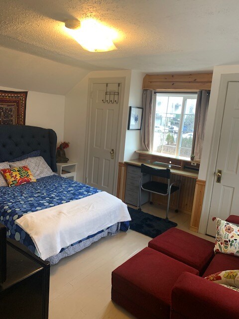 Property Id: 354803 Fully furnished quiet Vintage Victorian second story studio apartment in 1890's 4 plex Sunny studio has kitchenette with refrigerator, microwave, hot plate, toaster, coffee maker, built in desk with chair, comfy sofa bed, cedar lined closet, another closet with shelves, and bath with shower. There's a comfy double bed with linens, bedding and your kitchenette has dishes and cookware. Laundry in building and off street parking. Walking distance to OHSU Medical Center and the VA Hospital. Short walk to Marquam Park, etc. Rent includes all utilities and wifi! You will love the charming property and quiet convenient location. Call