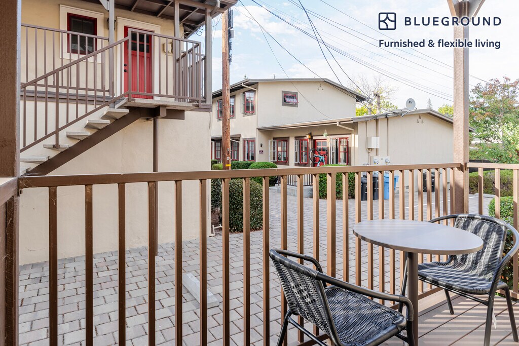 Feel at home wherever you choose to live with Blueground. You’ll love this sophisticated Downtown North furnished one bedroom apartment with its modern decor, fully equipped kitchen, and lovely living room. Ideally located, you’re close to all the best that Palo Alto has to offer! (ID #SFO2011) The advertised rate of $3,420/month is the lowest available price, based on a 3 month(s) stay with a move-in date of December 20, 2025. If you’re looking for a 1-year stay, the rate is $3,780/month. Rates vary depending on the duration of stay, season, and other parameters. For exact pricing and additional pricing components, please visit our website and enter your desired move-in and move-out dates. The rate is applicable when billed upfront; it can be higher if billed in multiple payments. Brokers are welcome to reach out. Were you looking for an unfurnished lease? Try Blueground instead and upgrade from unfurnished to furnished living: - Furnished at rates comparable to unfurnished - No setup or furniture costs - save thousands - Move-in ready - save time, just bring your suitcase Designed with you in mind Thoughtfully designed with bespoke finishes, modern furnishings, and a fully equipped kitchen, you’ll enjoy that “I’m home” feeling with this Blueground apartment. Whether you’re lounging in your bright living room streaming the latest and greatest entertainment on the smart TV or premium wireless speaker, or getting some well-earned rest on the superior quality mattress with luxury linens, you’ll fall in love with everything this Downtown North apartment has to offer. This apartment also offers in-apartment laundry. Sleeping arrangements Queen Bed, 63in/160cm Amenities Building amenities unique to this one bedroom apartment include an on-site: - Dryer - Washing machine - Parking - Pets allowed Arrival and ongoing support The entire apartment is yours to enjoy! Throughout your stay, you’ll have access to our Client Experience team through the Blueground App. You can schedule additional cleanings, submit maintenance requests, and view our neighborhood recommendations with just a few taps. We’ll share all details upon confirmation of your stay. Other things to note This Blueground apartment has flexible lease options, allowing you to book it for one month, a year, or more. Pets are welcome, though weight limits and breed restrictions apply and may incur fees. Parking is offered based on availability and is subject to a fee. Please keep in mind that this is a walk up building. We take great pride in ensuring every photo displayed is shot in our own units with our actual furnishings. That said, we regularly refresh our decor and furniture arrangement, which may differ from what’s pictured. [SI]