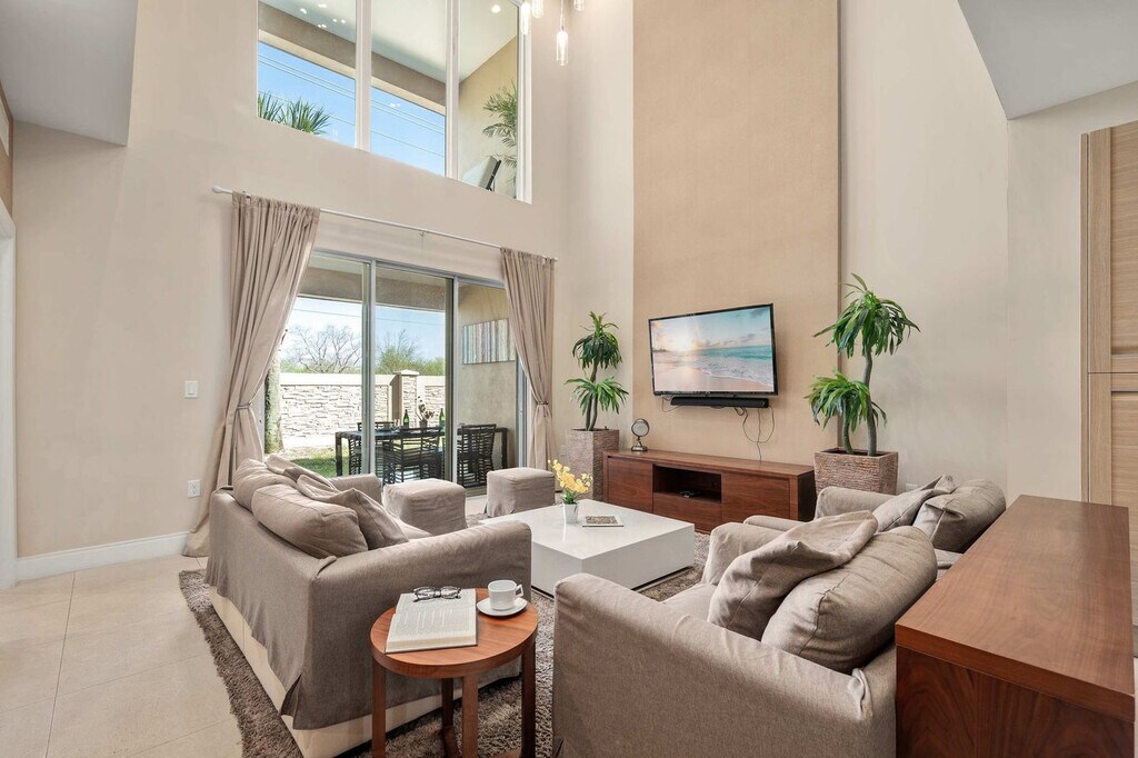 The advertised rate of $2,800/month is the lowest available price, based on a 1 month(s) stay with a move-in date of September 11, 2026. Rates vary depending on the duration of stay, season, and other parameters. For exact pricing and additional pricing components, please visit our website and enter your desired move-in and move-out dates. The rate is applicable when billed upfront; it can be higher if billed in multiple payments. Feel at home in this private villa located in the gated community of Magic Village Yards, right next to Disney parks. This villa features 4 spacious bedrooms and 4.5 full bathrooms. The villa includes a living room, a large full kitchen with stainless steel appliances, spacious indoor and outdoor dining areas, an outdoor patio with a grill and loungers, and a balcony with loungers overlooking the community. You'll also have access to a free washer and dryer. Access to the community outdoor pool and fitness center is available for an extra fee of $100 plus tax per group per day. To book your pass, go directly to the concierge. There is a shuttle upon request at concierge with a fee. Propane for the grill is provided by the guests; a propane tank is in the house that can be taken to fill up and used during the stay, but it is not guaranteed to be full upon arrival. Located in the heart of Orlando, this villa is just 8 minutes from Disney World, 20 minutes from Sea World, and 30 minutes from Universal Studios. Everything you need is at your fingertips, but if you venture out, you'll find world-class meals at many nearby dining options just a couple of miles from the resort. The villa is also just 2 minutes from Disney’s Animal Kingdom Park. There is absolutely no smoking and no drugs allowed inside the home or elsewhere on the property. Be considerate while socializing outdoors after 10pm and before 8am, and keep excessive noise to a minimum during this time. Only the number of guests indicated on the reservation are allowed to stay overnight on-premise, unless otherwise agreed upon in written form. The individual making the reservation must be at least 21 years of age and must be one of the guests staying at the property. No third-party bookings are allowed, unless otherwise agreed upon in written form. Please note no part of the exterior of the property should be used as a drying or hanging area for laundry of any kind, including hanging laundry over walls, fences, balconies, or other supports. Report damages immediately. The maximum number of guests that can be accommodated at any given time is 8. There is one parking space designated in front of the home with the unit number painted on the ground; additional cars can park in spaces throughout the community that do not have a painted number, but availability cannot be guaranteed. Please take out the trash and dispose of it properly upon departure. In the event you stay beyond the original scheduled check-out time of 10AM, you may incur a fee of up to $300. Please wipe shoes at the door and remove them indoors when possible. Follow additional guidelines posted within the home. [SI]