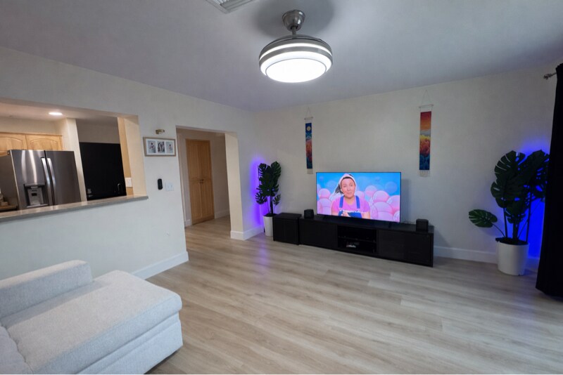 Property Id: 2414714 This beautifully updated 4BD/2BA home blends modern comfort with Florida charm. The property features a covered carport and energy-saving rooftop solar panels. Inside, you’ll find an open living area with luxury vinyl plank flooring, a modern kitchen pass-through, and a spacious dining area that comfortably seats up to 8. Two updated bathrooms feature designer tile and stylish vanities. A dedicated laundry room with washer and dryer adds everyday convenience. The backyard is a standout feature, offering a fully finished 100 sq ft detached studio with electricity and AC that can easily be used as a home office, mini gym, playroom, or creative space. The home is conveniently located within walking distance of a major shopping plaza with restaurants and everyday essentials. It also offers easy access to the Florida Turnpike, I-95, and the Sawgrass Expressway, while being just a 10-minute drive from the beach.