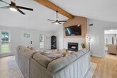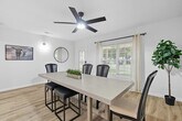 Quiet and tranquil, this adorable cottage is perfect for those looking for a serene escape. Away from the hustle and bustle of busy city life, this 3-bedroom, 3-bathroom country home will allow you to slow down and remember the important things in life. Full of southern rustic charm, this place’s thoughtful furnishings, curated décor, and attention to detail are sure to win you over. The cottage features a fully equipped kitchen, a backyard with a patio and BBQ grill, and sleeps up to 6 guests. This home caters to both short-term and medium-term stays, making it an excellent choice for corporate housing needs. The modern farmhouse kitchen is fully equipped with stainless steel appliances, cooking essentials, and even coffee to start your day right. The dining room features a spacious table with elegant tableware, while the living area offers vaulted ceilings, an oversized sectional, and a flat-screen TV with high-speed Wi-Fi. Each bedroom is a sanctuary of serenity with plush mattresses, TVs, and matching bedside tables and lamps. The bathrooms are sparkling clean and include essential toiletries. Complimentary parking is available to guests and a laundry room with a washer and dryer is provided. Pets are welcome with a non-refundable pet fee of $150 per pet, with a maximum of 2 pets per stay. Pet cleaning fees apply and pets should be kept off beds and furniture. Located in Grayson County, Texas with a richly diverse history, Sherman is situated only 10 miles south of Lake Texoma, one of the largest reservoirs in the state. Well-known for its champion bass fishing, sailing, camping, and hiking, Sherman lives up to its slogan – “classic town, broad horizon”. Nearby attractions include the Sherman Jazz Museum, Kelly Square, 903 Brewers, and Hagerman National Wildlife Refuge. For those interested in exploring Plano, noteworthy attractions are just a 45-minute drive away. We do not allow parties or large unauthorized gatherings on our property. Smoking of any type is not allowed, with violations subject to a $450 fine plus the cost to clean, deodorize, and repair damages. Check-in is at 4pm and checkout is at 10am. Small low-key gatherings are allowed only upon request and approval in advance. Noise levels are monitored to ensure compliance with local ordinances. The cottage is remote work-friendly with high-speed Wi-Fi and a comfortable living area that can double as a workspace. A laptop computer is not included.