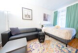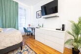 Welcome to your stylish sanctuary just moments away from Central Park! This cozy studio is nestled in the heart of the Upper East Side, offering a delightful stay whether you're here for business or leisure. Step into a space that feels like home from the moment you arrive. This fully furnished studio boasts a tasteful blend of comfort and style, featuring a queen-size bed and an air mattress for added flexibility. Enjoy the convenience of a well-equipped kitchenette with a large refrigerator, stovetop, oven, coffee maker, toaster, microwave, and all the utensils and cutlery you might need. The apartment also includes all bed linen and towels, as well as an iron and a hairdryer for your convenience. Relax in the spacious marble bathroom, complete with both a shower and a bathtub. The studio features a sofa, desk, and AC, providing all the comforts of home. Plus, take advantage of the laundry room with a washer/dryer located in the basement. Parking is available on the street and is free. Be sure to read all signs carefully to avoid parking tickets as there is alternate side parking most days. Conveniently located just a 2-minute walk from the Q train line at 72nd Street subway station and an 8-minute walk from the 6 train line at 77th Street subway station. Additionally, you'll find a City Bike station just one block away, perfect for exploring the city on two wheels. Indulge in the culinary delights of the neighborhood with plenty of restaurants right on the corner. The Upper East Side is known for its posh buildings, Madison Avenue's flagship boutiques, and proximity to some of the most fantastic museums in the country, including the Metropolitan Museum of Art and the Solomon R. Guggenheim Museum. Absolutely no smoking is allowed inside or outside of the apartment, and doing so will result in a fine of $500. Pets are not allowed. Luggage storage is not available, so please use a service like to store your luggage before check-in or after check-out. The building is totally safe, and all guests must respect quiet hours ranging from 10 pm to 7 am. The apartment must be used for vacation purposes only, no commercial use. If the electric bill exceeds the average monthly bill of $100, the guest will be billed for overage. You cannot receive mail at this address, please consider opening a PO Box. Check-out time is at 11:00 AM, and all dishes should be placed in the kitchen sink, and all trash in the trashcans. A laptop computer is not included. Kindly note that a $350 refundable security deposit is required and will be collected directly by the partner after your booking is confirmed. The security deposit will be handled through direct communication with the partner and is not processed automatically.
