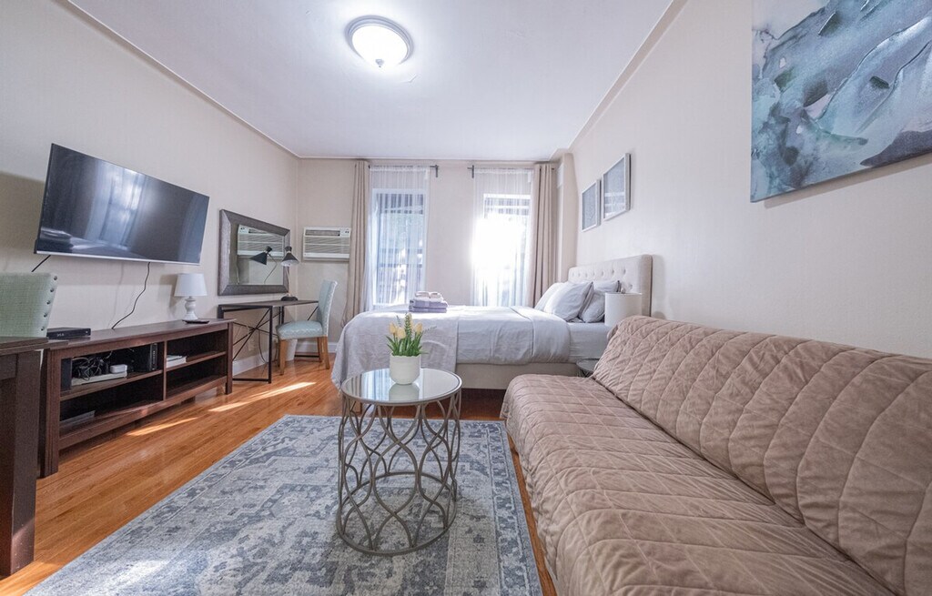 Feel at home in this stylish and fully furnished studio apartment located on the 1st floor of a walk-up building, just a short walk from Central Park and many museums. Enjoy the unbeatable location near the Q and 6 train lines, making it easy to explore the city. The apartment is fully furnished and features a fully equipped kitchen with a large refrigerator, dishwasher, stove top, oven, coffee maker, toaster, microwave, and all necessary utensils and cutlery. It also includes bed linen, towels, an iron, and a hair dryer. The marble bathroom offers both a shower and a bathtub. Additionally, the apartment is equipped with a bed, sofa, desk, mirror, and AC. Laundry facilities are available in the basement. Parking is available on the street and is free, but be mindful of alternate side parking rules to avoid tickets. Situated in the Upper East Side, this apartment is surrounded by the trappings of wealth, posh buildings, and flagship boutiques along Madison Avenue. It's a key destination for visitors with fantastic museums like the Metropolitan Museum of Art and the Solomon R. Guggenheim Museum nearby. The area is also home to elegant art galleries and lavish boutiques, offering a taste of the luxe life. This apartment requires a minimum 30-night rental. Smoking is strictly prohibited, and violations will result in a $500 fine. Pets are not allowed, and luggage storage is not available. Check-out time is 11:00 AM, and all dishes should be placed in the kitchen sink with trash in the trashcans. Quiet hours are from 10 PM to 7 AM. The apartment is not child-proof, and mail cannot be received at this address. Kindly note that a $350 refundable security deposit is required and will be collected directly by the partner after your booking is confirmed. The security deposit will be handled through direct communication with the partner and is not processed automatically.