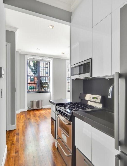 Welcome to this stunning two-bedroom apartment, thoughtfully designed to offer both style and functionality. With hardwood floors throughout, this home exudes warmth and elegance in every room.The modern kitchen is equipped with custom cabinets and generous counter space, ideal for cooking and entertaining. The living area is expansive, providing ample room to relax, host gatherings, or set up a home office. Both bedrooms comfortably fit queen-sized beds and feature plenty of closet space to keep you organized. The renovated bathroom includes a sleek shower/tub combo for your convenience. Pets are welcome on a case-by-case basis.At Real New York, were redefining the moving experience with a team of experts who truly understand the NYC market. With over 1,000 exclusive listings and access to 100% of available apartments, were committed to helping you find your perfect homewhether in a full-service building or a charming walk-up.Fees includes $20 application Fee, 1 months rent, and 1 month security deposit.