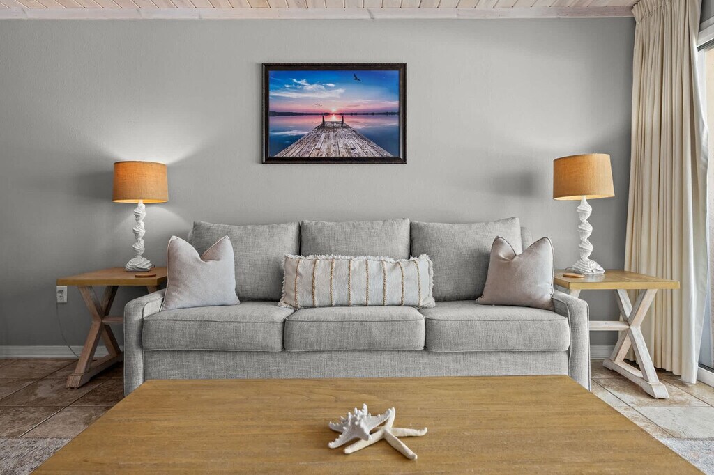 Welcome to "Deja View," where breathtaking views and private beach access await you for a truly relaxing vacation. This spacious 1-bedroom apartment, located in the iconic Crystal Beach neighborhood within the Crystal Sands community, comfortably accommodates up to six guests with hall bunks and a queen sleeper. Enjoy the stunning sunrises and sunsets that will have you feeling that "Deja View" time and time again. The apartment offers both elevator and stairway access, making it a great fit for families and those with mobility considerations. Step into "Deja View" and be captivated by the unobstructed emerald water and sugar sand views. The apartment features a cozy living area with a reclining reading chair and a couch that opens into a queen-sized sleeper. Enjoy entertainment on the 65" Smart TV with cable, perfect for catching up on your favorite shows. The fully stocked kitchen includes a fridge, dishwasher, range, microwave, and more, along with a coffee maker and Keurig machine. A stackable washer and dryer are also available for your convenience. Enjoy complimentary beach service for two, including two chairs and one umbrella, offered seasonally from March to October. The community pool, seasonally heated and located in a shaded area, is available year-round for a relaxing swim. Located in the quiet and family-friendly Crystal Beach neighborhood, "Deja View" offers easy access to local attractions. The private gated beach access is just steps away, ensuring a hassle-free beach experience. While a vehicle is recommended for exploring the area, there are a few restaurants within walking distance. Ride-sharing services like Uber and Lyft are popular, and grocery delivery is available through SHIPT or Instacart. Check-in is at 4:00 PM CST and check-out is at 10:00 AM CST. Early check-in and late check-out are not guaranteed. Pets are not permitted at this property, and only registered guests listed on the reservation are allowed. Events and parties are not permitted, and noise ordinances are in effect at 10 PM sharp. Trailer, RV, box truck, and watercraft parking is not allowed, with towing fees applicable for violations. Guests under age 25 must be accompanied by a parent or guardian, and any unreported issues or damage may result in financial responsibility for guests.