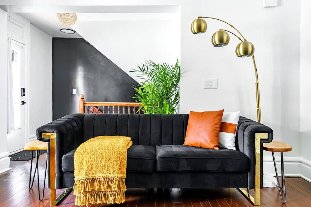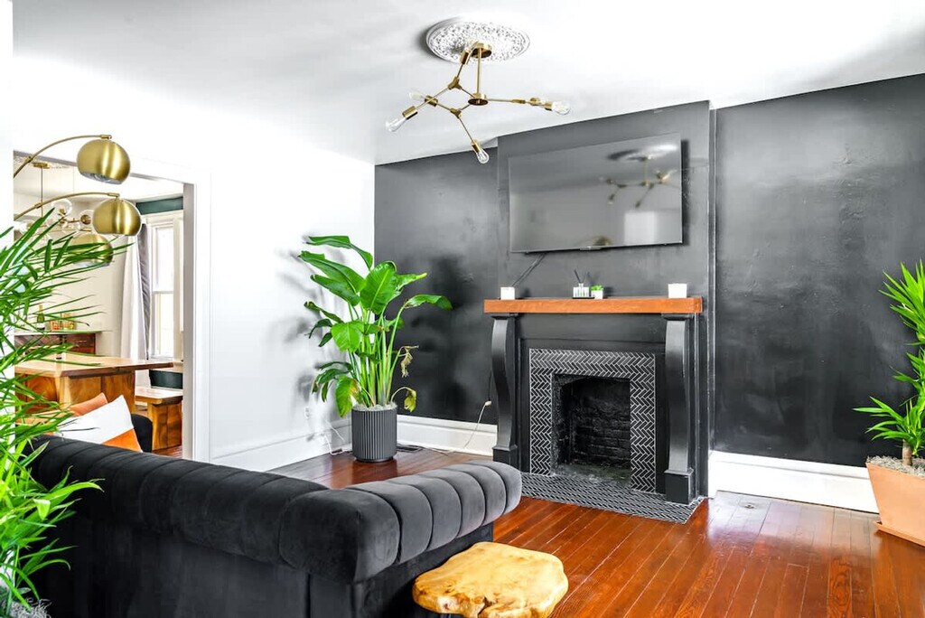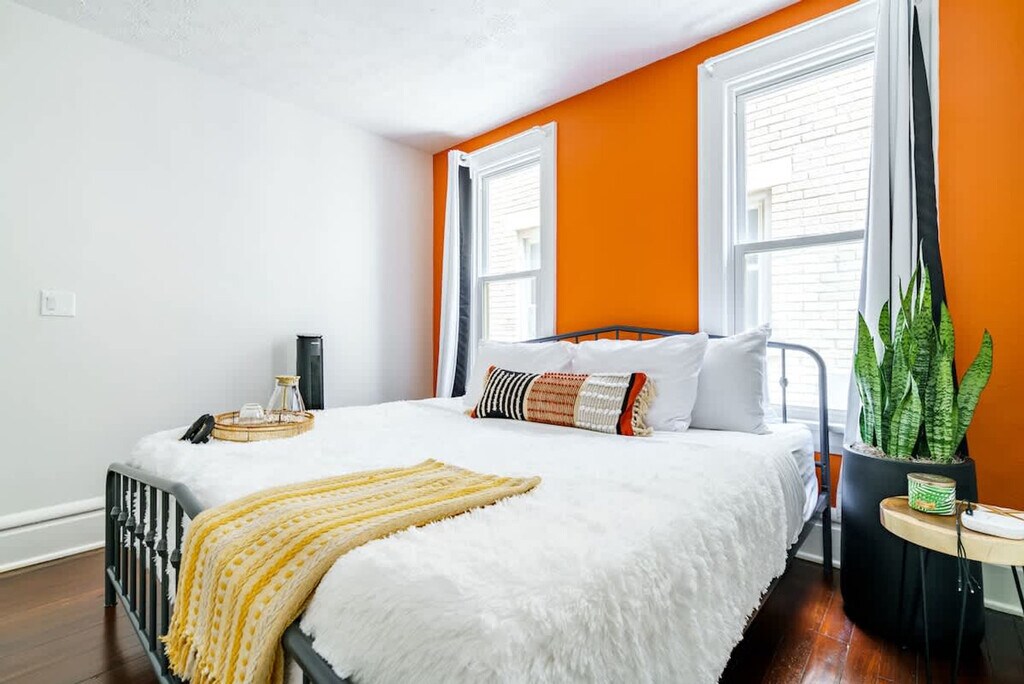 Feel at home in this centrally located 2-bedroom apartment in downtown Columbus, literally a few steps from Short North. This ground floor apartment is part of a duplex and features original hardwood floors. This apartment is filled with rare plants and upscale decor. It features a fully equipped kitchen with high-end appliances, a 55-inch Smart TV in the living room, high-speed internet, tower fans, white noise machines, a hair dryer, and a handheld steamer. Complimentary toiletries are provided in the bathroom. Private off-street parking is available for one vehicle. If parking for additional cars is needed, street permit parking is available for $10 per additional vehicle for your entire stay. Pets are welcome for a fee of $40 per pet per night, up to a $600 cap per pet for the entire stay. The location is perfect for enjoying Short North, with many restaurants and bars on North High Street. The apartment is within walking distance of the Short North District and the Greater Columbus Convention Center. It's also less than a mile from the downtown Columbus area, Kroger Food Market, and Ohio State University campus. Nationwide Children's Hospital is an 8-minute drive away, and CMH Columbus John Glenn Airport is a 10-minute drive/Uber ride away. Easton Town Center Shopping Mall is a 15-minute drive. There is easy access to all major highways (I-71, I-670, I-315) and COTA lines for getting around the city. Some city or neighbor noise is possible due to the central downtown location and shared wall with the neighboring unit. Quiet hours are from 9 p.m. to 7 a.m., and loud music is not allowed at any time. A $500 charge will be applied for breaking any house rules. Absolutely no plants in the home are to be moved for any reason. No parties, small gatherings, or events are allowed. Smoking, marijuana, firearms, illegal substances, or any illegal activity are not allowed on the property; smoking is allowed outside the home only. No additional unregistered guests are allowed. Tampering with exterior surveillance, noise monitors, and smoke sensors will lead to immediate cancellation with no refund, as well as a $300 violation charge. Any late check-outs will result in an additional charge of $100. The original hardwood floors and staircases may not be suitable for children. Includes a dedicated workspace. Registration Number: 20234440 [SI]