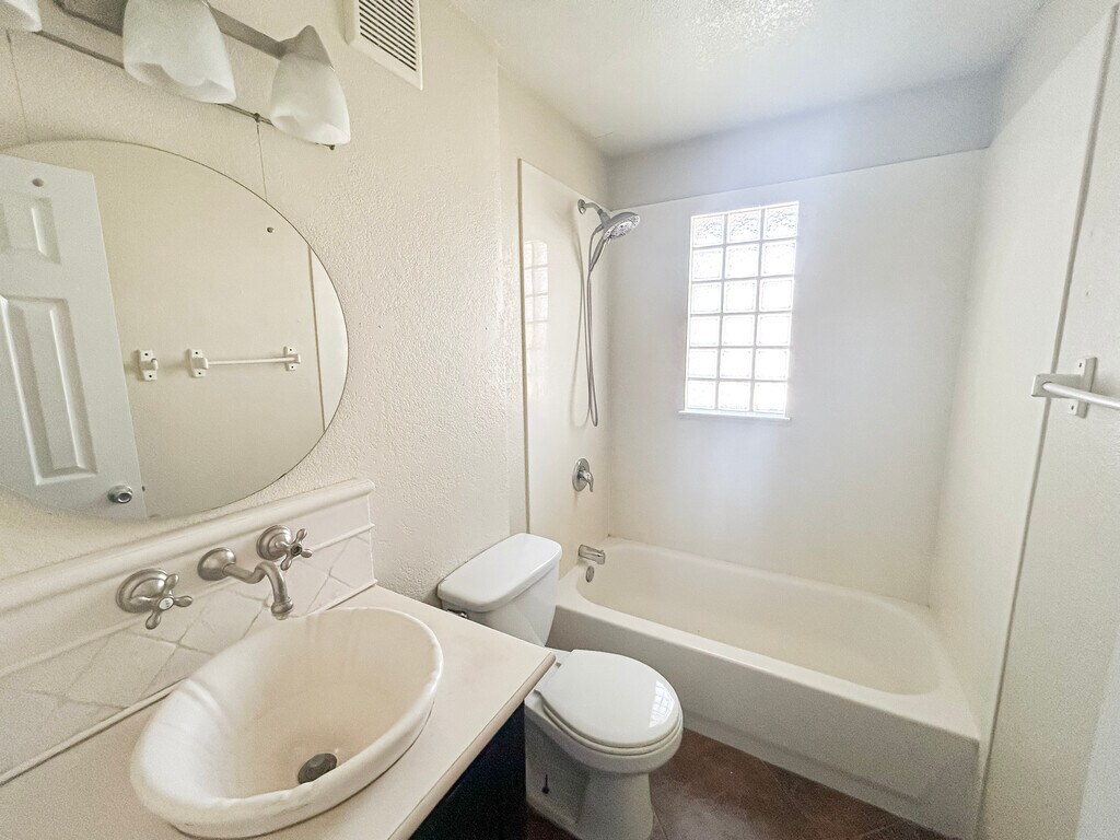Property Id: 2406778 This spacious 2-bedroom, 2-bath home offers a bright and inviting layout with beautiful tile flooring throughout. The kitchen features sleek black cabinetry, stainless steel appliances, a stylish backsplash, and a dedicated dining area, creating a perfect space for both everyday living and entertaining. The large living room is filled with natural light, giving the home an open and airy feel. The thoughtfully designed floor plan includes a full hallway bathroom ideal for guests, while the primary bedroom offers added privacy with its own en-suite bath. The primary suite features a tiled walk-in shower, direct access to the patio, and even includes a refrigerator for added convenience. Enjoy the convenience of washer and dryer hookups, a covered carport, and small outdoor spaces in both the front and back—perfect for relaxing or enjoying a bit of fresh air. Ideally located near shopping, dining, and more, this home offers both comfort and convenience. Don’t miss out—apply today! Call or text Erika at Utilities separate. Dogs allowed (up to 2, non-aggressive breeds). Renters insurance required.