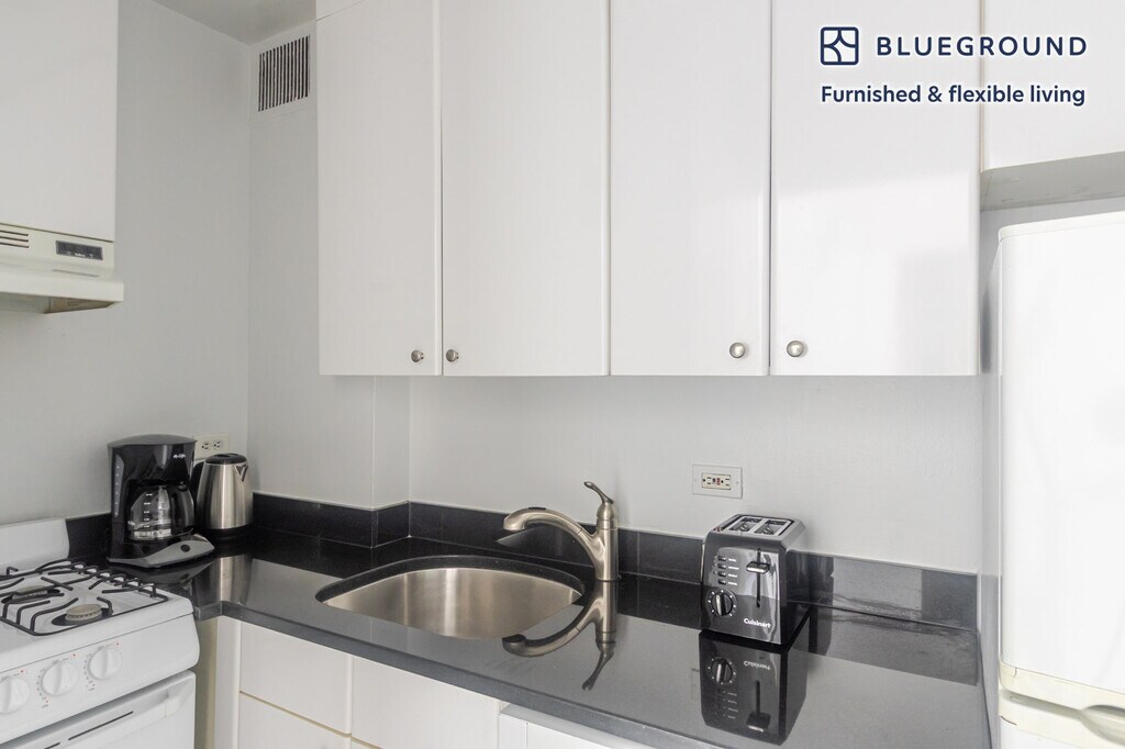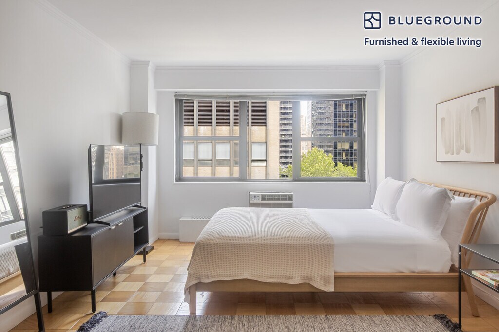 Show up and start living from day one in New York with this bright studio Blueground apartment. You’ll love coming home to this thoughtfully furnished, beautifully designed, and fully equipped Midtown East home. (ID #NYC1955) The advertised rate of $4,200/month is the lowest available price, based on a 12 month(s) stay with a move-in date of August 18, 2029. Rates vary depending on the duration of stay, season, and other parameters. For exact pricing and additional pricing components, please visit our website and enter your desired move-in and move-out dates. The rate is applicable when billed upfront; it can be higher if billed in multiple payments. Brokers are welcome to reach out. Were you looking for an unfurnished lease? Try Blueground instead and upgrade from unfurnished to furnished living: - Furnished at rates comparable to unfurnished - No setup or furniture costs - save thousands - Move-in ready - save time, just bring your suitcase Designed with you in mind As with any Blueground apartment, you’ll find a thoughtfully designed space complete with beautiful furniture and a fully equipped kitchen in this studio property. And, thanks to our superior quality mattresses, fully stocked linens, and towels, you can relax knowing you’ll always feel comfortably at home. When you’re ready for some fun, you can take in the New York vibes or bring the entertainment to you with the premium wireless speaker or smart TV. Sleeping arrangements Queen Bed, 63in/160cm Amenities Building amenities unique to this studio apartment include an on-site: - Doorman - Elevator Arrival and ongoing support The entire apartment is yours to enjoy! Throughout your stay, you’ll have access to our Client Experience team through the Blueground App. You can schedule additional cleanings, submit maintenance requests, and view our neighborhood recommendations with just a few taps. We’ll share all details upon confirmation of your stay. Ideally Located This furnished apartment is located in Midtown East. This bustling neighborhood is home to NYC landmarks like the Empire State Building, the United Nations' headquarters, and Grand Central Station. Midtown East is also home to a thriving dining scene, with everything from humble food carts selling hotdogs to white-tablecloth restaurants with multiple Michelin stars. There are also many cultural attractions, including the Museum of Modern Art, the lovely Japan Society, the historic Morgan Library, and more. Midtown East is also home to some incredible shopping, from the international flagship stores along Fifth Avenue to Bloomingdale's, one of the city's best-loved department stores. Other things to note Building amenities may have an extra cost. This Blueground apartment has flexible lease options, allowing you to book it for two months, a year, or more. Brokes CYOF. We take great pride in ensuring every photo displayed is shot in our own units with our actual furnishings. That said, we regularly refresh our decor and furniture arrangement, which may differ from what’s pictured. [SI]