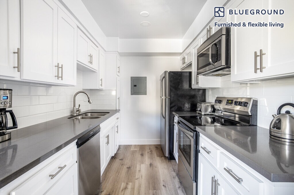 Discover the best of Beverly Hills, with this one bedroom apartment in Beverly Hills. It’ll be easy to simply show up and start living in this furnished apartment with its fully equipped kitchen, living room, and our dedicated, on-the-ground support. (ID #LAX400) The advertised rate of $3,390/month is the lowest available price, based on a 1 month(s) and 27 day(s) stay with a move-in date of January 1, 2027. If you’re looking for a 1-year stay, the rate is $3,820/month. Rates vary depending on the duration of stay, season, and other parameters. For exact pricing and additional pricing components, please visit our website and enter your desired move-in and move-out dates. The rate is applicable when billed upfront; it can be higher if billed in multiple payments. Brokers are welcome to reach out. Were you looking for an unfurnished lease? Try Blueground instead and upgrade from unfurnished to furnished living: - Furnished at rates comparable to unfurnished - No setup or furniture costs - save thousands - Move-in ready - save time, just bring your suitcase Designed with you in mind Gorgeous furniture, fully equipped kitchen, smart TV, and a premium wireless speaker are just a few of the amenities you’ll find inside this one bedroom apartment. Ideally located in Beverly Hills, you’ll find a lot to love outside as well. When you’re ready to relax, you’ll be happy to discover every Blueground bedroom comes with superior quality mattresses, luxury linens, and cozy towels. We handle everything so you can simply show up and start living. Sleeping arrangements King Bed, 70.8in/180cm Amenities Building amenities unique to this one bedroom apartment include an on-site: - Dryer in building - Elevator - Swimming pool - Washing machine in building - Parking Arrival and ongoing support The entire apartment is yours to enjoy! Throughout your stay, you’ll have access to our Client Experience team through the Blueground App. You can schedule additional cleanings, submit maintenance requests, and view our neighborhood recommendations with just a few taps. We’ll share all details upon confirmation of your stay. Ideally Located This furnished apartment is located in Beverly Hills. It's an upscale neighborhood that is home to many celebrities, luxury hotels and the famous Rodeo Drive shopping district. The star power here is palpable. To relax in an expansive green space, head to the Beverly Gardens, which is a park that stretches for 22 blocks along Santa Monica Boulevard. Next to similarly star-studded Bel Air and West Hollywood, this area has become a must-see destination. The Venice Boardwalk and LAX are both about 25 minutes away by car. Other things to note Building amenities may have an extra cost. This Blueground apartment has flexible lease options, allowing you to book it for one month, a year, or more. Parking is offered based on availability and is subject to a fee. We take great pride in ensuring every photo displayed is shot in our own units with our actual furnishings. That said, we regularly refresh our decor and furniture arrangement, which may differ from what’s pictured. [SI]
