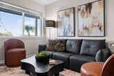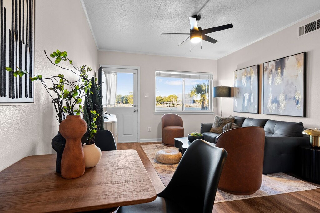 The advertised rate of $4,319/month is the lowest available price, based on a 30 day(s) stay with a move-in date of August 9, 2026. Rates vary depending on the duration of stay, season, and other parameters. For exact pricing and additional pricing components, please visit our website and enter your desired move-in and move-out dates. The rate is applicable when billed upfront; it can be higher if billed in multiple payments. Feel at home in this brand-new, rare ground-floor waterfront condo on Okaloosa Island, offering sunrise views and breezy boho vibes. One of just two walk-out waterfronts in a quiet 12-unit complex, this 2-bedroom retreat offers a dock and is just a 6-minute walk to the sugar-white sands of the Gulf via Beach Access 1. This fully stocked condo features Smart TVs and coastal decor. The kitchen is fully stocked with stainless appliances and granite countertops, and includes both drip and K-cup coffee makers. A small table for two is perfect for breakfast indoors, while a table for four on the patio lets you dine with a waterfront breeze. Both bedrooms feature queen beds, Smart TVs, and relaxed coastal touches. The bathroom has a fresh vanity, new paint, and a tub/shower combo. Towels, shampoo, conditioner, and a hair dryer are all provided. A coin-operated laundry room is right next to your assigned parking spot. The shared dock is a perfect spot for fishing, sunrise coffee, or evening stargazing. A slip is available for vessels up to 25 feet. Located on the north peak of Bluefish Drive, this waterfront condo offers a quiet, tucked-away setting that still keeps you close to everything. Beach Access #1 and #2 are just a short walk away. The neighborhood blends a laid-back, family-friendly atmosphere with easy access to local favorites. The Okaloosa Island Pier and The Boardwalk are just down the beach, where you can enjoy fresh seafood, ice cream, and shopping. Gulfarium Marine Adventure Park, Wild Willy’s Adventure Zone, and downtown Fort Walton Beach are just a few minutes away. Destin is a quick 10-minute drive, making it easy to explore HarborWalk Village, charter a fishing trip, or try out some of the Emerald Coast’s best restaurants. Guests agree to pay a $500 smoke damage cleaning fee if any sign or smell of smoke is encountered after check-out. Pets are not allowed at this property. Check-out time is 10 am, and guests agree to pay a $50 fine if not checked out by the specified time. Only the specific number of guests noted in the booking are allowed on premises unless approved in writing. If the guest exceeds the occupancy noted in the reservation, all guests and/or visitors will be immediately evicted without refund for unused days remaining. The guest also agrees to pay a charge of $20 per person per day for every visitor not identified in the reservation. [SI]