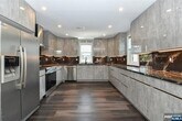 Welcome to this newly built two-family modern home, perfectly located near schools, shopping, and transportation to NYCa all within walking distance! This top-floor duplex unit offers style, space, and comfort. The second floor features a sleek open-concept kitchen with Cafe brand range hood and dishwasher, a bright dining area, and in-unit laundry. On the left, a spacious primary suite offers a walk-in closet and full bath with soaking tub. Two additional bedrooms, a stylish hallway bath with double vanity, and a second primary suite with its own full bath complete the layouta along with a large living room and balcony. Upstairs, enjoy a full-floor master suite with a beautifully designed bath. Smart home features include climate and lighting control, plus an electric car charger (Tesla compatible) for added convenience. Dona TMt miss this rare opportunity to live in a modern, spacious upper unit in a prime location!