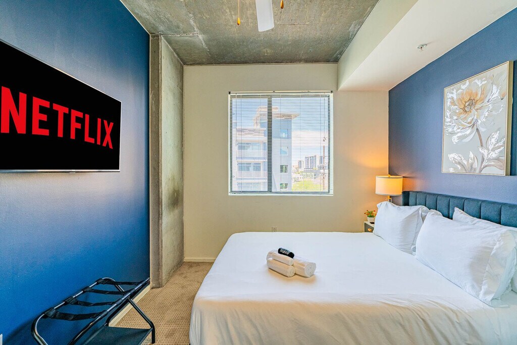 Live the lovely Phoenix life in this comfortable, modern apartment located in a quiet neighborhood. Strategically placed, you have access to places of interest including pubs, bars, good food places, and businesses. After exploring the sights or handling business, return to a stress-free rest in this relaxing home. Welcome to your home away from home. This thoughtfully designed 2-bedroom unit offers a socially and environmentally conscious living space, paired with exceptional service and premium amenities. The open-concept layout seamlessly connects the living, dining, and kitchen areas, creating a stylish and modern environment ideal for both relaxation and entertaining. The living room features a comfortable sofa bed and a 55" 4K HDR Smart TV, while the fully equipped kitchen includes a microwave, stove, oven, refrigerator/freezer, dishwasher, toaster, coffee maker, electric kettle, and dining table with chairs. The bedrooms offer a queen bed with premium linens and a full-over-full bunk bed, and both bathrooms are stocked with fresh towels and essential toiletries. One parking spot is included, and guests must print their parking pass as detailed in the check-in instructions. Pets are allowed upon prior approval and subject to a $20 per night fee, with a maximum of 2 pets allowed. Breed restrictions apply, and unauthorized pets will result in a $500 penalty. Situated in a vibrant area with nightlife nearby, this apartment is perfect for guests eager to experience the local scene. While some weekend noise from bars or foot traffic may be heard, the location offers easy access to various attractions and businesses, making it ideal for those looking to explore Phoenix. Noise monitors are installed to detect excessive decibel levels, and tampering will result in a fee. Hallway security cameras are in place for guest safety. Repeated policy violations may result in removal from the property, with any costs incurred charged to the guest. A guest verification process is required, including providing a government-issued photo ID and a valid credit card matching the ID name. Check-in details may be withheld until verification is complete.