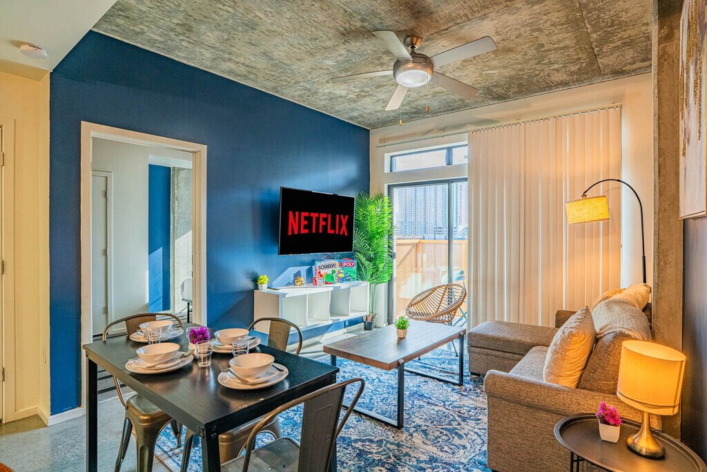 The advertised rate of $2,109/month is the lowest available price, based on a 30 day(s) stay with a move-in date of July 29, 2026. Rates vary depending on the duration of stay, season, and other parameters. For exact pricing and additional pricing components, please visit our website and enter your desired move-in and move-out dates. The rate is applicable when billed upfront; it can be higher if billed in multiple payments. Live that lovely Phoenix life and feel at home in this comfortable, modern apartment in a quiet neighborhood. This 2-bedroom unit offers a relaxing place to rest after a day of exploring the city. The living space features an innovative open-concept design that blends the living and dining areas with the kitchen, creating a modern and sleek living experience. The living room has a sofa bed, a 4K 55" HDR smart TV, and a coffee table. The fully equipped kitchen includes a microwave, stove, oven, refrigerator/freezer, dishwasher, toaster, coffee maker with coffee essentials, electric kettle, sink with hot and cold water, glasses, silverware, pots, pans, and a dining table with chairs. Essential toiletries, towels, hand towels, and washcloths are provided in both bathrooms. Parking is available with one spot. The guest needs to print their parking pass. Pets are allowed depending on size or if they are service animals, with an additional cleaning fee of $25 per night for stays of 1-7 nights, $200 for stays of 8-29 nights, or $300 for stays of 30+ nights. Welcome to the vibrant district of Phoenix, a dynamic urban enclave that combines modern living with cultural richness. Nestled in the heart of downtown Phoenix, this apartment offers a unique blend of convenience and cultural exploration. Immerse yourself in the arts and culture scene at the Roosevelt Row Arts District, known for its eclectic galleries and vibrant street art. Indulge in the diverse culinary landscape of downtown Phoenix, from trendy cafes to upscale dining establishments. Enjoy the lively nightlife with trendy bars, rooftop lounges, and entertainment venues. Sports fans and concert-goers will appreciate the close proximity to Chase Field and Talking Stick Resort Arena. Enjoy the outdoors at nearby Hance Park. Navigating the city is a breeze with convenient access to public transportation and major highways. Quiet hours are between 10 pm and 8 am every day. If there are noise complaints or any violation of this rule, it may result in cancellation of booking and removal from property without refund. There is a strict no-party policy. If there is a party of any kind the police will be called and everyone will be removed from the property with no refunds. No unauthorized guests are allowed at the unit, and there is a $100 fine per guest if discovered. Smoking is prohibited without exception on this property. If any signs of smoking are found in the unit or on the premises, a fine of $500 will be imposed. If you are found to have brought pets without prior notification, there will be a $500 fee. If the noise monitors are tampered with, there will be a fee. You may be charged extra for cleaning if the property is left in a state that necessitates additional cleaning. Lost or unreturned keys will incur a $500 fee. For delayed checkout, there will be a $500 late checkout fee. If you are bringing a pet(s), please let us know beforehand for the fees, otherwise there will be a fine of $500 if discovered. [SI]