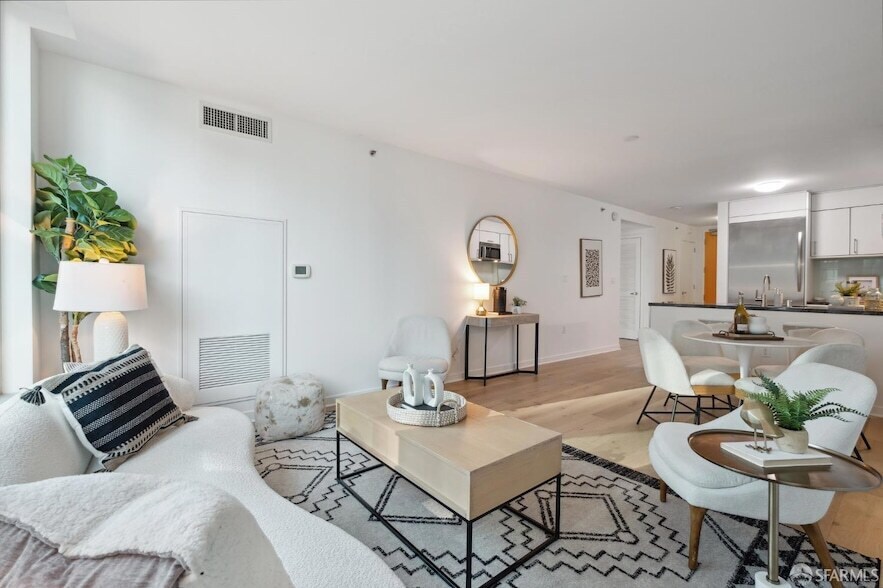 Introducing the epitome of luxurious city living at the Infinity a full-service building with city views. This exquisite 1BR/1BA + Den unit features beautiful hardwood floors, custom window treatments, a spacious walk-in closet with custom closet organizers, and sleek Studio Becker cabinetry. The kitchen boasts top-of-the-line Bosch & Thermador appliances, perfect for culinary enthusiasts, while the convenience of an in-unit washer dryer adds a touch of elegance. Renowned International Superstar Architect Bernardo Fort-Brescia of Arquitectonica, together with local powerhouse Heller Manus, has created an unparalleled living experience along San Francisco's waterfront. Prepare to be spoiled by an impressive array of luxury amenities, including a 24-hour doorman and concierge, a club room for entertaining, a 5,000-square-foot state-of-the-art gym for fitness enthusiasts, a refreshing 75-foot lap pool, a theatre room for movie nights, and a convenient business center for professionals. Just 2 blocks from the Embarcadero, Financial District, Ferry Building, Oracle Park, and some of the best restaurants and shopping spots the city has to offer. Easy access to the Bay Bridge, 80/101 and 280 Hways. *Unit is unfurnished, photos from a higher floor unit with the same layout*