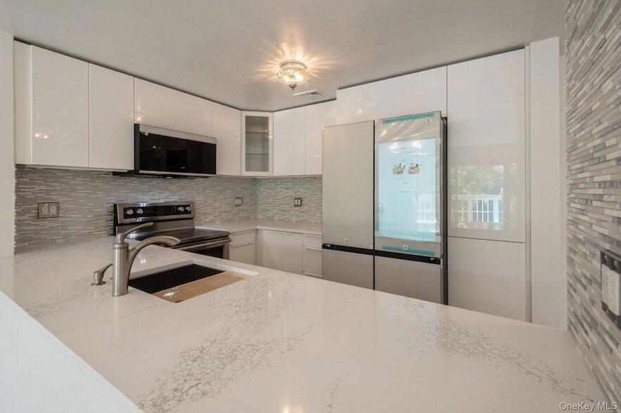 NEW PRICE - INCREDIBLE VALUE to move right into this beautifully gut-renovated 2-bedroom, 2-bathroom apartment in the heart of Briarcliff Manor. This spacious and sunny one-level home features a modern open-concept layout with a brand-new kitchen outfitted with smart stainless steel and white glass appliances, sleek cabinetry, and Porcelanosa tile finishes. The expansive living and dining area opens via sliding doors to a large private balcony with serene views of the pool, perfect for relaxing or entertaining.The primary suite is a true retreat with a walk-in closet, an additional oversized closet, and a luxurious spa-like bathroom complete with Porcelanosa tile, a walk-in shower, and a separate dressing area. The second bedroom is generously sized, and the hall bathroom has also been fully renovated with high-end finishes. Additional highlights include a new TimberTech deck, in-unit washer/dryer, double oven, floor-to-ceiling kitchen pantry, double Lazy Susan kitchen corner cabinets, abundant closet space throughout, new flooring with beachy, infinity look out from the balcony to the view of the pool. Enjoy resort-style living amidst gardened landscaping with access to the community s pool, gym, saunas, and clubroom with a fireplace and kitchen. This unit includes one indoor garage parking space #72 and one assigned outdoor space #42 and a bicycle storage room. Very easy no-step access from lobby and garage with elevator. Underground electrical wiring powers the building. Conveniently located just a short stroll to town, shops, restaurants, and recreation. Briarcliff Manor schools and recreation. A rare opportunity for turnkey living with luxury amenities. Dogs under 60 lbs will be considered. Breed restrictions. Cats allowed.