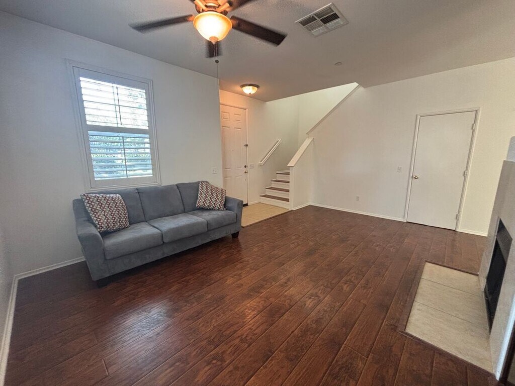 Two-story condo within a gated, amenity-rich community in Perris. Featuring 3 bedrooms (including one on the main level), 2.5 baths, a modern kitchen with quartz counters, a private gated patio, and a cozy living room with fireplace, it merges comfort with functionality. Two-car garage plus additional parking, central HVAC, and HOA-managed maintenance including security, it's a turnkey property within a sought-after complex.