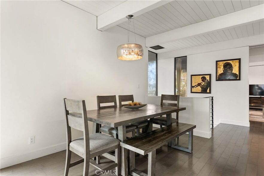 Nestled in the heart of the Hollywood Hills, this stunning home showcases sweeping hillside views and an unbeatable location just moments from the major studios, Lake Hollywood and everything the Valley, Westside and Downtown LA have to offer. Designed in a timeless mid-century modern style, this home blends architectural character with contemporary comfort. The upper level offers a spacious open-concept layout featuring a gourmet kitchen with stainless steel appliances, dining area and living room, ideal for both everyday living and entertaining, along with a versatile den and full bathroom. Downstairs, you ll find three generously sized bedrooms, another full bathroom and a dedicated laundry area. Additional highlights include floor-to-ceiling windows throughout, a gated front courtyard, large backyard and two-car garage.