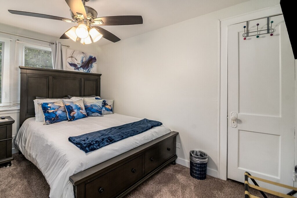 This beautifully renovated 2,100 SF home is strategically located between O'Hare Airport and the vibrant suburbs of Oakbrook and Naperville, offering easy access to the hottest spots within 15 minutes. The property features five bedrooms and two and a half bathrooms, including a master bedroom and basement with a king-size bed, two bedrooms with queen-size beds, and one full-size bed. The living room includes an air mattress, making a total of six beds. The modern kitchen is equipped with plenty of utensils, cooking spices, and oils, ensuring you feel at home. The updated home boasts a garage and a 60+ foot driveway, with renovations completed in 2020. It features a modern kitchen with updated flooring and granite countertops. The arcade room is a highlight, offering an air hockey table, an arcade cabinet with 2,000 classic games, and darts. For family fun, there are cards and board games available. The property is children-friendly, offering a pack and play sleeper, a stroller, a highchair, and a booster seat for your convenience. Technology amenities include six LCD televisions with access to streaming services like Hulu, Disney, and ESPN, as well as Netflix and Prime Video with your login. The home offers up to 300 MBPS internet speed with Wi-Fi throughout, and a sound bar in the living room enhances your entertainment experience. Situated conveniently between O'Hare Airport and the suburbs of Oakbrook and Naperville, this home provides easy access to local attractions and amenities. Whether you're exploring the nearby suburbs or heading into the city, you'll find this location ideal for all your travel needs. Check-in requires submission of ID and security fees, and failure to do so will result in no refunds or access to the property. Fees may vary for long-term stays, and reservations are not accepted without security fees paid upfront. The property is non-smoking and does not allow parties, with penalties applied for violations. The home is equipped with up to 300 MBPS internet speed and an ethernet hard line, making it suitable for remote work. A laptop computer is not included.