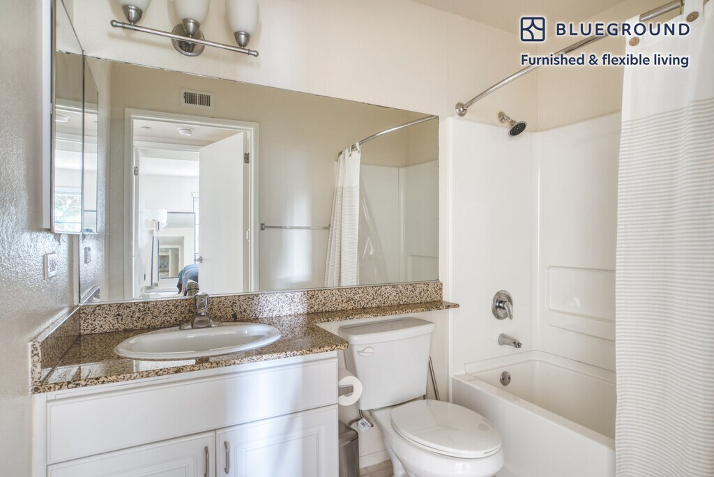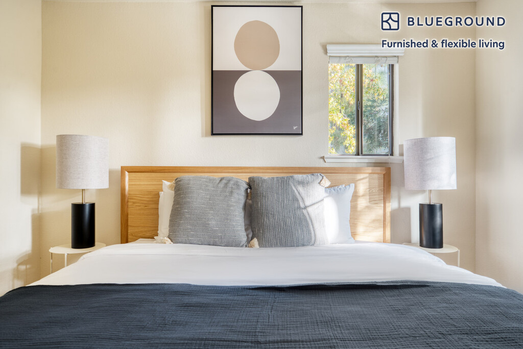 Discover the best of San Jose, with this one bedroom apartment in River Oaks. It’ll be easy to simply show up and start living in this fashionably furnished apartment with its fully equipped kitchen, sophisticated living room, and our dedicated, on-the-ground support. (ID #SFO1214) The advertised rate of $2,700/month is the lowest available price, based on a 1 month(s) and 27 day(s) stay with a move-in date of January 13, 2026. If you’re looking for a 1-year stay, the rate is $2,860/month. Rates vary depending on the duration of stay, season, and other parameters. For exact pricing and additional pricing components, please visit our website and enter your desired move-in and move-out dates. The rate is applicable when billed upfront; it can be higher if billed in multiple payments. Brokers are welcome to reach out. Were you looking for an unfurnished lease? Try Blueground instead and upgrade from unfurnished to furnished living: - Furnished at rates comparable to unfurnished - No setup or furniture costs - save thousands - Move-in ready - save time, just bring your suitcase Designed with you in mind As with any Blueground apartment, you’ll find a thoughtfully designed space complete with beautiful furniture and a fully equipped kitchen in this one bedroom property. And, thanks to our superior quality mattresses, luxury linens, and towels, you can relax knowing you’ll always feel comfortably at home. When you’re ready for some fun, you can take in the San Jose vibes or bring the entertainment to you with the premium wireless speaker or smart TV. This apartment also offers in-apartment laundry. Sleeping arrangements King Bed, 70.8in/180cm Amenities Building amenities unique to this one bedroom apartment include an on-site: - BBQ Area - Dryer - Elevator - Swimming pool - Washing machine - Parking - Pets allowed - Tennis court Arrival and ongoing support The entire apartment is yours to enjoy! Throughout your stay, you’ll have access to our Client Experience team through the Blueground App. You can schedule additional cleanings, submit maintenance requests, and view our neighborhood recommendations with just a few taps. We’ll share all details upon confirmation of your stay. Other things to note Building amenities may have an extra cost. This Blueground apartment has flexible lease options, allowing you to book it for one month, a year, or more. Pets are welcome, though weight limits and breed restrictions apply and may incur fees. Parking is offered based on availability and is subject to a fee. We take great pride in ensuring every photo displayed is shot in our own units with our actual furnishings. That said, we regularly refresh our decor and furniture arrangement, which may differ from what’s pictured. [SI]