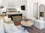 Feel at home in this charming barn-converted studio at Baker’s Acres Retreat, situated on 20 acres of land with stunning views of Saratoga Passage. This newly constructed and air-conditioned studio features modern furnishings and tasteful decor. The functional kitchen is equipped for cooking meals and includes a dishwasher. Enjoy the comfort of heated floors and a mini-split A/C for both cooling and additional heating. A generator supports power use during power outages. Well-trained pets are welcome at $50 per pet per night. Located minutes away from Langley, a picturesque town replete with galleries, cafes, wine tasting, and quaint restaurants. Whidbey Island offers a tranquil retreat with lush forests, quaint towns, and stunning beaches, ideal for nature lovers with ample hiking, kayaking, and scenic views. The best way to explore Whidbey Island is by car. Quiet hours are between 10pm-8am, and there is a $500 fine per violation for parties and events, smoking or vaping of any kind anywhere on the property including outdoor areas, digital piracy, and wearing shoes in the home. Please refrain from allowing pets on furniture and linens, and do not leave pets unattended. Please bring poop bags and pick up after your pets. Cellphone signal can be spotty, so you might want to enable Wi-Fi calling/texting if your carrier allows. Owners live in the main house on the property and have a dog at home that might bark from time to time, but you will not hear him from the studio. In the check-in instructions, specific directions will bring you to the viewpoint, but please do not venture beyond there to respect the privacy of owners and neighbors. The studio is about 366 sq ft and has a separate entry and structure tucked away from the main house. While at the studio, you will not be able to hear or see the main house. Satellite internet is available. [SI]
