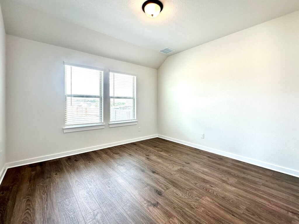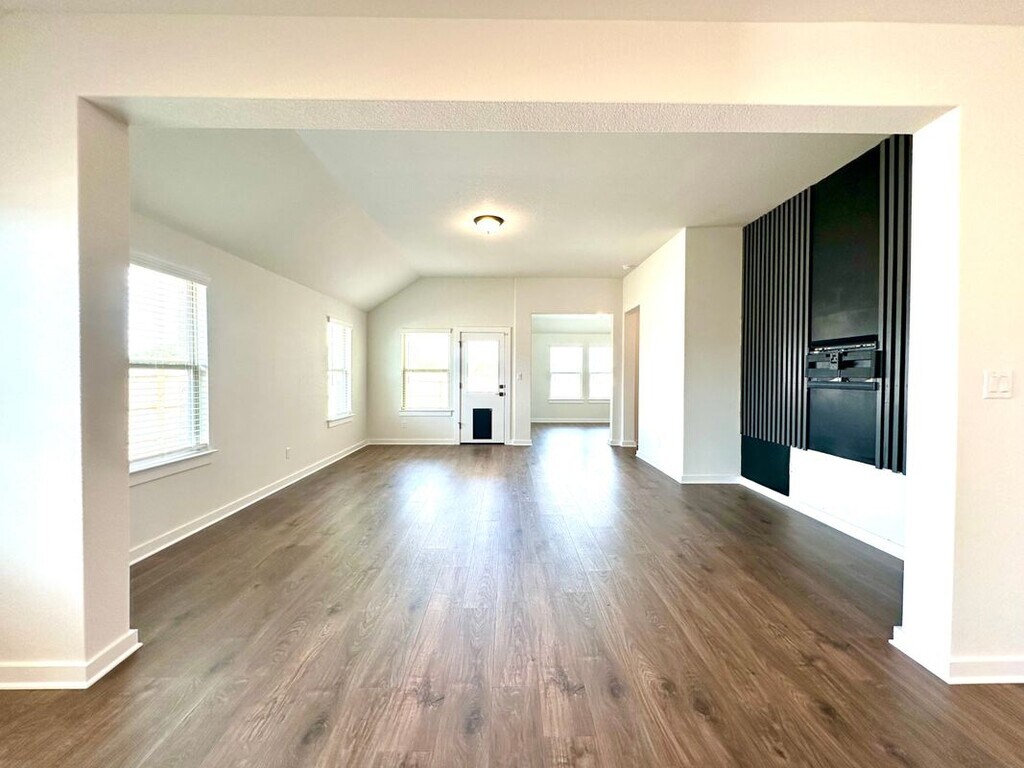 Welcome to Blanco Vista, where this 2024 single-story home blends modern finishes with a thoughtful layout and resort-style amenities. Built with a focus on function and style, the layout provides both open gathering areas and private retreats. The chef-inspired kitchen features sleek quartz counters, stainless steel appliances, built-in 5-burner gas cooktop, convection oven, designer backsplash, pendant lighting, and a large breakfast bar ideal for coffee, casual dining, or gathering with friends. The dining and living spaces flow effortlessly together, creating a true open-concept layout. Luxury vinyl plank flooring, abundant windows, and high ceilings enhance the sense of space and light, while a custom accent wall anchors the living room with a stylish focal point. This plan offers rare versatility with two bonus areas: a designated office with double doors for privacy, PLUS a bonus flex room off the living area that easily adapts as a playroom, media lounge, workout space, or second office. A private primary retreat showcases dual quartz vanities, a soaking tub, oversized shower with modern black-framed glass, and a massive walk-in closet you have to see to appreciate. Two additional spacious bedrooms and a full guest bath provide comfort for family or visitors. The expansive backyard includes a new extended patio sized for dining, grilling, or lounge seating beneath the Texas stars. Green space offers room for pets, play, or just a nice view with morning coffee — an outdoor area designed to be as versatile as the home itself. As part of Blanco Vista, residents enjoy a Junior Olympic pool, splash pad, fishing pond, trails, playgrounds, pavilions, and Blanco River access at Five Mile Dam Park. Families appreciate the on-site Blanco Vista Elementary, a TEA-recognized STEM magnet. All this, just minutes to Texas State University, San Marcos shopping and dining, with quick I-35 access placing downtown Austin less than 40 minutes away.