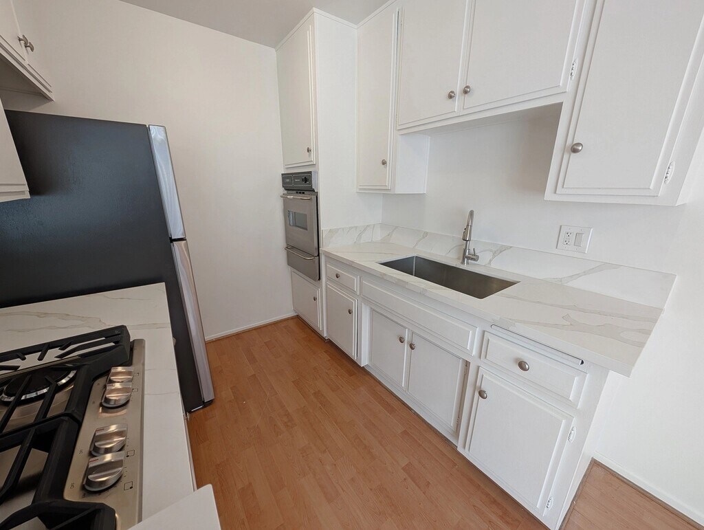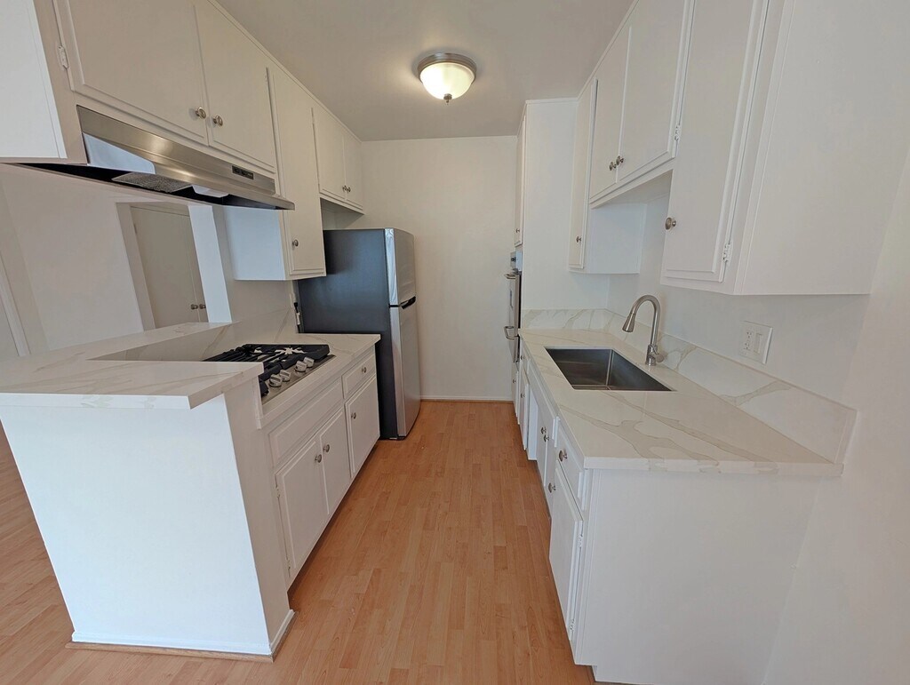 Unit Description: Gorgeous Remodeled 1 Bedroom and 1 Bath Apartment in the heart of Palms Area! This unit has Hardwood Laminate Floors Throughout, Ceiling Fan in the Living Room / Bedroom and Vertical Blinds. The Kitchen has White Cabinetry, White Quartz Countertops with Gray Streaks, Single Basin Stainless Steel Sink and Appliances: Refrigerator, Wall Oven, Cook Top and Range Hood. Lots of Storage Space. Wall A/C Unit in the Living Room. Bathroom with Bathtub, White Vanity Cabinet with a White Quartz Counterto and Large Wall Mirror. Tenant Pays All Utilities - Including Prorated Share of Water and Trash (Rubs). 1 Parking Spot. Shared Laundry Room Onsite. 1 Parking Spot Tenant Pays All Utilities IT490416 - IT49st3365KeystoneAve