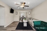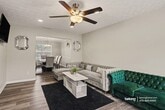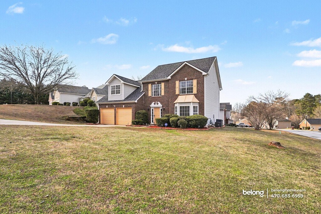 Four bedrooms, 3.5 baths, and beautifully detailed ceilings throughout both the main living areas and bedrooms - this Ellenwood home delivers space with personality! A brick-front exterior, two-car garage, and extended driveway create a welcoming and practical arrival. Inside, the living room feels open and bright, centered around a fireplace and mounted TV setup. A decorative textured ceiling design adds visual interest overhead, while a ceiling fan enhances comfort year-round. The kitchen features white cabinetry, stainless steel appliances, generous counter space. An adjacent dining nook sits beside sliding glass doors, offering an easy flow for meals, while a separate formal dining room with statement lighting provides additional space to gather. Each bedroom carries that same textured ceiling detail, giving the entire home a cohesive look. This home also has a family room that offers another comfortable lounge space with a ceiling fan and mounted TV setup, perfect for relaxing or entertaining. Out back, the patio is ready for outdoor dining or quiet evenings. With convenient access to River Road and I-675, you are minutes from Kroger, Publix, Southlake Mall, Panola Mountain State Park, and dining along Fairview Road. *Fireplace is for decorative use only and cannot be used without consent from Belong. *Our homes come as-is with all essentials in working order. Want upgrades? Request it through the Belong app, and our trusted pros will take care of the rest!