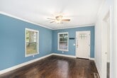 Welcome to the perfect home with opportunity to purchase as well during or after lease. Ideal for airline workers. Walk into the living room with fresh paint and wood-look laminate flooring throughout with two secondary bedrooms, all with new ceiling fans to the left. Adjacent in the hall is one of the two bathrooms with a brand new tile, stand-up shower. The large eat-in kitchen with tile flooring, backsplash, timeless wood cabinets, and stainless appliances also house the laundry closet with a washer and dryer. The primary suite with same easy to clean flooring as the front of the home has the second renovated bathroom with a new stand-up shower. The patio off the kitchen overlooks the deep privacy-fenced yard. Energy efficient windows, ample insulation, and a crawl space perfect for extra storage. Easy access from both I-75 and I-85, I-285, as well as the MARTA station. This home is charming, updated bungalow is located in quiet neighborhood that's walkable to many local amenities and only minutes away from the world's largest, most efficient airport-Hartsfield Atlanta, home to Delta Air Lines. There are eateries, a library, a park/dog park/splash pad/tennis/skate park, etc all close by. Apply TODAY!