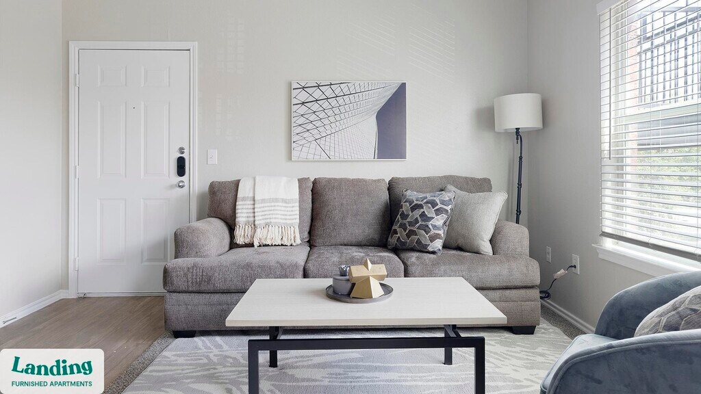 Landing offers flexible lease terms from weeks to months. Please always visit our website or contact us for the latest pricing & availability. Stay longer, save more: 6-Month Minimum base rent: starts at $1349/mo 12-Month Minimum base rent: starts at $1049/mo Landing offers flexible leases across a network of over 35,000 fully-furnished apartments throughout 375+ cities so you can rent on your terms, practically anywhere, and avoid the hassle of paying deposits or application fees. Visit to learn about all the benefits of a Landing membership, see our competitive up-to-date pricing, explore available apartments, take virtual tours, and make reservations online without jumping through traditional rental hoops. Landing's apartments at Kenzie Park are designed for comfortable, easy living, with the ability to stay as long as you like. Experience living with Landing Every apartment is outfitted with all the modern essentials including: custom-designed furnishings, a fully-equipped kitchen with deluxe stainless steel appliances, a gourmet coffee maker, premium linens, Smart TVs, and incredibly fast, reliable internet for working from home. When you live with Landing, you'll enjoy a hassle-free experience with the added benefit of 24/7 access to our dedicated member experience team. Some of the nitty-gritty: a background check and proof of income are required; we're completely smoke-free; bundled utility packages and pricing vary based on length of stay; pet-friendly options available; listed price reflects a 12-month minimum stay.