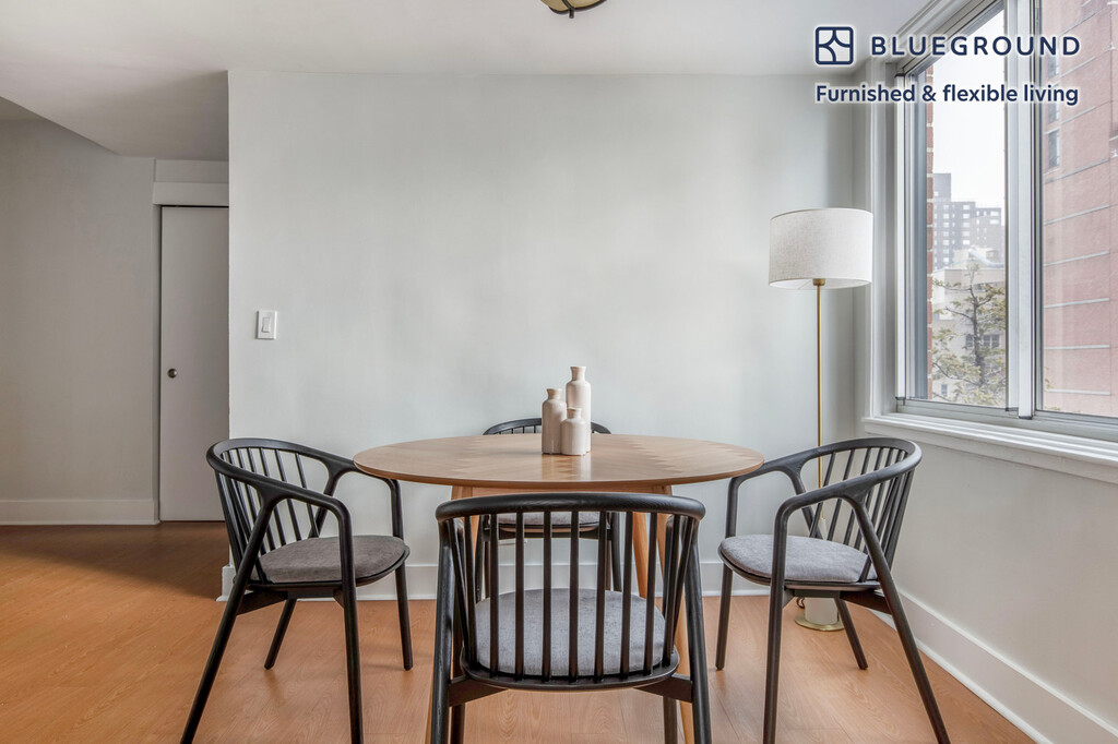 Show up and start living from day one in New York with this sophisticated two bedroom Blueground apartment. You’ll love coming home to this thoughtfully furnished, beautifully designed, and fully equipped Midtown East home with stunning views over the city. (ID #NYC1408) The advertised rate of $6,310/month is the lowest available price, based on a 6 month(s) and 4 day(s) stay with a move-in date of August 1, 2026. If you’re looking for a 1-year stay, the rate is $6,780/month. Rates vary depending on the duration of stay, season, and other parameters. For exact pricing and additional pricing components, please visit our website and enter your desired move-in and move-out dates. The rate is applicable when billed upfront; it can be higher if billed in multiple payments. Brokers are welcome to reach out. Were you looking for an unfurnished lease? Try Blueground instead and upgrade from unfurnished to furnished living: - Furnished at rates comparable to unfurnished - No setup or furniture costs - save thousands - Move-in ready - save time, just bring your suitcase Designed with you in mind As with any Blueground apartment, you’ll find a thoughtfully designed space complete with beautiful furniture and a fully equipped kitchen in this two bedroom property. And, thanks to our superior quality mattresses, luxury linens, and towels, you can relax knowing you’ll always feel comfortably at home. When you’re ready for some fun, you can take in the New York vibes or bring the entertainment to you with the premium wireless speaker or smart TV. Sleeping arrangements Queen Bed, 63in/160cm Double Bed, 55in/140cm Amenities Building amenities unique to this two bedroom apartment include an on-site: - Doorman - Dryer in building - Elevator - Washing machine in building - Pets allowed Arrival and ongoing support The entire apartment is yours to enjoy! Throughout your stay, you’ll have access to our Client Experience team through the Blueground App. You can schedule additional cleanings, submit maintenance requests, and view our neighborhood recommendations with just a few taps. We’ll share all details upon confirmation of your stay. Ideally Located This furnished apartment is located in Midtown East. This bustling neighborhood is home to NYC landmarks like the Empire State Building, the United Nations' headquarters, and Grand Central Station. Midtown East is also home to a thriving dining scene, with everything from humble food carts selling hotdogs to white-tablecloth restaurants with multiple Michelin stars. There are also many cultural attractions, including the Museum of Modern Art, the lovely Japan Society, the historic Morgan Library, and more. Midtown East is also home to some incredible shopping, from the international flagship stores along Fifth Avenue to Bloomingdale's, one of the city's best-loved department stores. Other things to note Building amenities may have an extra cost. This Blueground apartment has flexible lease options, allowing you to book it for one month, a year, or more. Pets are welcome, though weight limits and breed restrictions apply and may incur fees. Brokes CYOF. We take great pride in ensuring every photo displayed is shot in our own units with our actual furnishings. That said, we regularly refresh our decor and furniture arrangement, which may differ from what’s pictured. [SI]