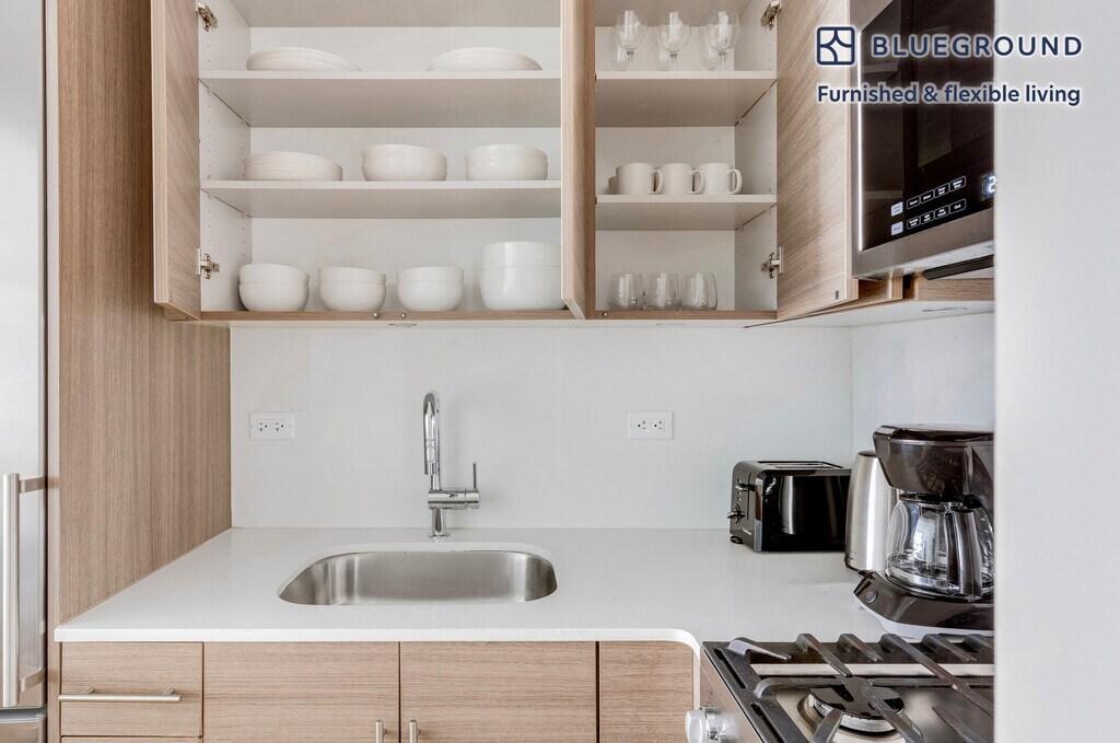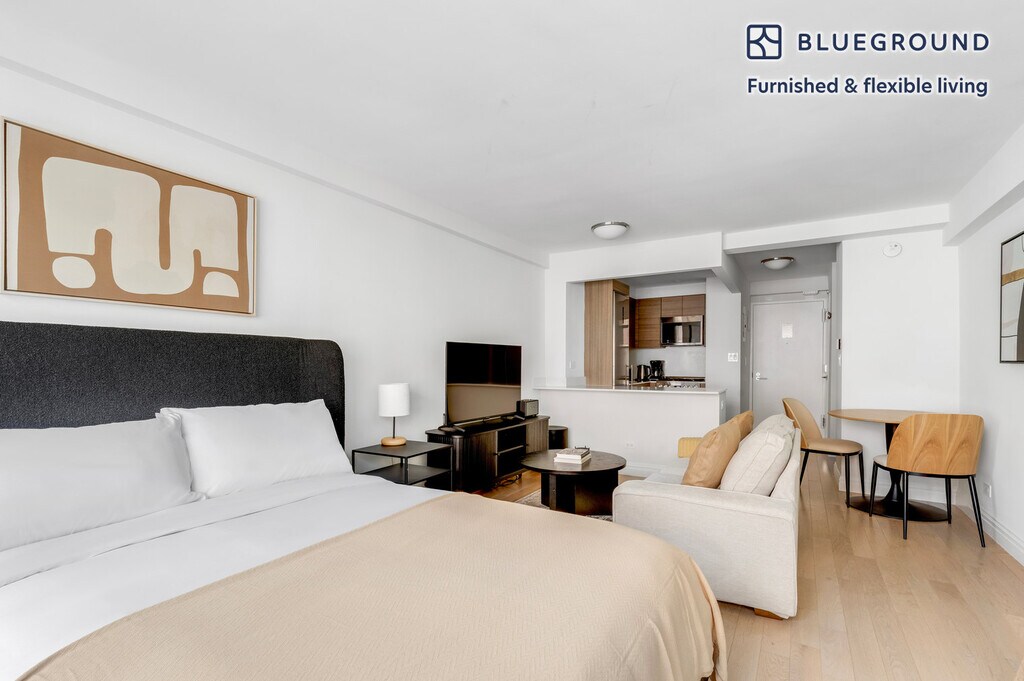 Feel at home wherever you choose to live with Blueground. You’ll love this beautiful Midtown East furnished studio apartment with its modern decor, fully equipped kitchen, and bright living room. Ideally located, you’re close to all the best that New York has to offer! (ID #NYC712) The advertised rate of $4,110/month is the lowest available price, based on a 6 month(s) and 4 day(s) stay with a move-in date of August 17, 2026. If you’re looking for a 1-year stay, the rate is $4,250/month. Rates vary depending on the duration of stay, season, and other parameters. For exact pricing and additional pricing components, please visit our website and enter your desired move-in and move-out dates. The rate is applicable when billed upfront; it can be higher if billed in multiple payments. Brokers are welcome to reach out. Were you looking for an unfurnished lease? Try Blueground instead and upgrade from unfurnished to furnished living: - Furnished at rates comparable to unfurnished - No setup or furniture costs - save thousands - Move-in ready - save time, just bring your suitcase Designed with you in mind Thoughtfully designed with bespoke finishes, modern furnishings, and a fully equipped kitchen, you’ll enjoy that “I’m home” feeling with this Blueground apartment. Whether you’re lounging in your sophisticated living room streaming the latest and greatest entertainment on the smart TV or premium wireless speaker, or getting some well-earned rest on the superior quality mattress with luxury linens, you’ll fall in love with everything this Midtown East apartment has to offer. Sleeping arrangements Queen Bed, 63in/160cm Amenities Building amenities unique to this studio apartment include an on-site: - Doorman - Dryer in building - Elevator - Washing machine in building - Pets allowed Arrival and ongoing support The entire apartment is yours to enjoy! Throughout your stay, you’ll have access to our Client Experience team through the Blueground App. You can schedule additional cleanings, submit maintenance requests, and view our neighborhood recommendations with just a few taps. We’ll share all details upon confirmation of your stay. Ideally Located This furnished apartment is located in Midtown East. This bustling neighborhood is home to NYC landmarks like the Empire State Building, the United Nations' headquarters, and Grand Central Station. Midtown East is also home to a thriving dining scene, with everything from humble food carts selling hotdogs to white-tablecloth restaurants with multiple Michelin stars. There are also many cultural attractions, including the Museum of Modern Art, the lovely Japan Society, the historic Morgan Library, and more. Midtown East is also home to some incredible shopping, from the international flagship stores along Fifth Avenue to Bloomingdale's, one of the city's best-loved department stores. Other things to note Building amenities may have an extra cost. This Blueground apartment has flexible lease options, allowing you to book it for one month, a year, or more. Pets are welcome, though weight limits and breed restrictions apply and may incur fees. Brokes CYOF. We take great pride in ensuring every photo displayed is shot in our own units with our actual furnishings. That said, we regularly refresh our decor and furniture arrangement, which may differ from what’s pictured.