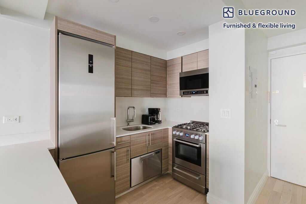 Show up and start living from day one in New York with this cheery studio Blueground apartment. You’ll love coming home to this thoughtfully furnished, beautifully designed, and fully equipped Midtown East home. (ID #NYC2172) The advertised rate of $4,320/month is the lowest available price, based on a 1 month(s) and 27 day(s) stay with a move-in date of January 19, 2026. If you’re looking for a 1-year stay, the rate is $4,810/month. Rates vary depending on the duration of stay, season, and other parameters. For exact pricing and additional pricing components, please visit our website and enter your desired move-in and move-out dates. The rate is applicable when billed upfront; it can be higher if billed in multiple payments. Brokers are welcome to reach out. Were you looking for an unfurnished lease? Try Blueground instead and upgrade from unfurnished to furnished living: - Furnished at rates comparable to unfurnished - No setup or furniture costs - save thousands - Move-in ready - save time, just bring your suitcase Designed with you in mind Thoughtfully designed with bespoke finishes, modern furnishings, and a fully equipped kitchen, you’ll enjoy that “I’m home” feeling with this Blueground apartment. Whether you’re lounging in your cozy living room streaming the latest and greatest entertainment on the smart TV or premium wireless speaker, or getting some well-earned rest on the superior quality mattress with luxury linens, you’ll fall in love with everything this Midtown East apartment has to offer. Sleeping arrangements Queen Bed, 63in/160cm Amenities Building amenities unique to this studio apartment include an on-site: - Doorman - Dryer in building - Elevator - Washing machine in building - Pets allowed Arrival and ongoing support The entire apartment is yours to enjoy! Throughout your stay, you’ll have access to our Client Experience team through the Blueground App. You can schedule additional cleanings, submit maintenance requests, and view our neighborhood recommendations with just a few taps. We’ll share all details upon confirmation of your stay. Ideally Located This furnished apartment is located in Midtown East. This bustling neighborhood is home to NYC landmarks like the Empire State Building, the United Nations' headquarters, and Grand Central Station. Midtown East is also home to a thriving dining scene, with everything from humble food carts selling hotdogs to white-tablecloth restaurants with multiple Michelin stars. There are also many cultural attractions, including the Museum of Modern Art, the lovely Japan Society, the historic Morgan Library, and more. Midtown East is also home to some incredible shopping, from the international flagship stores along Fifth Avenue to Bloomingdale's, one of the city's best-loved department stores. Other things to note Building amenities may have an extra cost. This Blueground apartment has flexible lease options, allowing you to book it for one month, a year, or more. Pets are welcome, though weight limits and breed restrictions apply and may incur fees. Brokes CYOF. We take great pride in ensuring every photo displayed is shot in our own units with our actual furnishings. That said, we regularly refresh our decor and furniture arrangement, which may differ from what’s pictured. [SI]