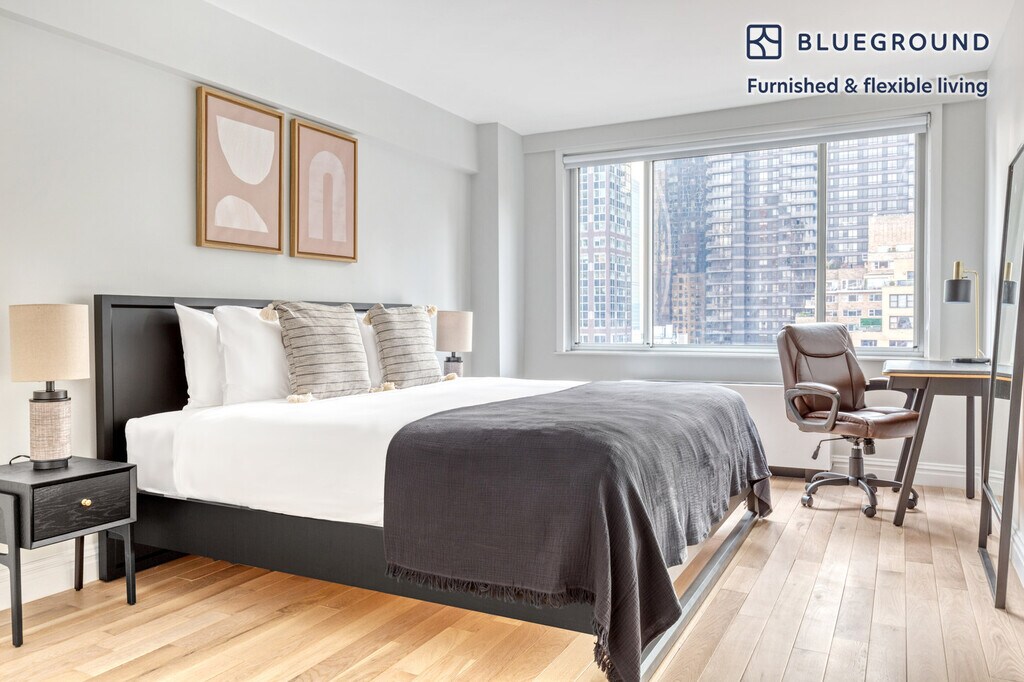 Feel at home wherever you choose to live with Blueground. You’ll love this sophisticated Midtown East furnished one bedroom apartment with its modern decor, fully equipped kitchen, and cozy living room with great views. Ideally located, you’re close to all the best that New York has to offer! (ID #NYC710) The advertised rate of $6,460/month is the lowest available price, based on a 3 month(s) and 24 day(s) stay with a move-in date of July 4, 2026. If you’re looking for a 1-year stay, the rate is $5,900/month. Rates vary depending on the duration of stay, season, and other parameters. For exact pricing and additional pricing components, please visit our website and enter your desired move-in and move-out dates. The rate is applicable when billed upfront; it can be higher if billed in multiple payments. Brokers are welcome to reach out. Were you looking for an unfurnished lease? Try Blueground instead and upgrade from unfurnished to furnished living: - Furnished at rates comparable to unfurnished - No setup or furniture costs - save thousands - Move-in ready - save time, just bring your suitcase Designed with you in mind As with any Blueground apartment, you’ll find a thoughtfully designed space complete with beautiful furniture and a fully equipped kitchen in this one bedroom property. And, thanks to our superior quality mattresses, fully stocked linens, and towels, you can relax knowing you’ll always feel comfortably at home. When you’re ready for some fun, you can take in the New York vibes or bring the entertainment to you with the premium wireless speaker or smart TV. Sleeping arrangements King Bed, 70.8in/180cm Amenities Building amenities unique to this one bedroom apartment include an on-site: - Doorman - Dryer in building - Elevator - Washing machine in building - Pets allowed Arrival and ongoing support The entire apartment is yours to enjoy! Throughout your stay, you’ll have access to our Client Experience team through the Blueground App. You can schedule additional cleanings, submit maintenance requests, and view our neighborhood recommendations with just a few taps. We’ll share all details upon confirmation of your stay. Ideally Located This furnished apartment is located in Midtown East. This bustling neighborhood is home to NYC landmarks like the Empire State Building, the United Nations' headquarters, and Grand Central Station. Midtown East is also home to a thriving dining scene, with everything from humble food carts selling hotdogs to white-tablecloth restaurants with multiple Michelin stars. There are also many cultural attractions, including the Museum of Modern Art, the lovely Japan Society, the historic Morgan Library, and more. Midtown East is also home to some incredible shopping, from the international flagship stores along Fifth Avenue to Bloomingdale's, one of the city's best-loved department stores. Other things to note Building amenities may have an extra cost. This Blueground apartment has flexible lease options, allowing you to book it for one month, a year, or more. Pets are welcome, though weight limits and breed restrictions apply and may incur fees. Brokes CYOF. We take great pride in ensuring every photo displayed is shot in our own units with our actual furnishings. That said, we regularly refresh our decor and furniture arrangement, which may differ from what’s pictured. [SI]