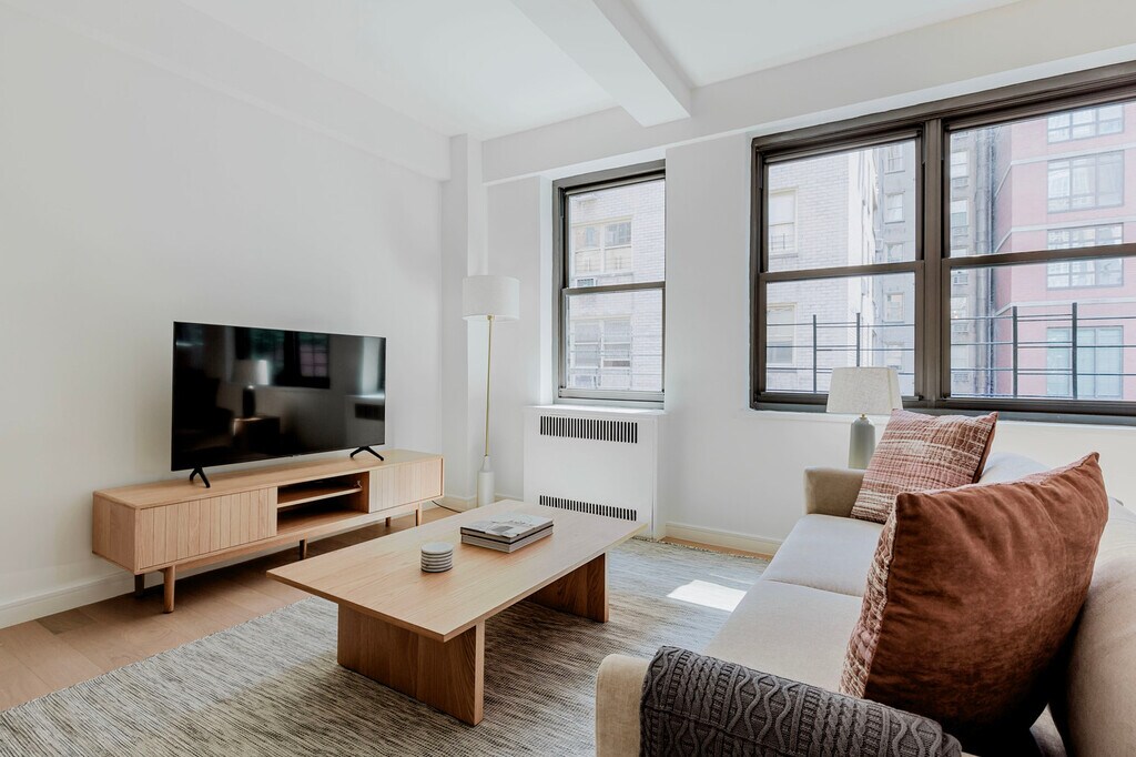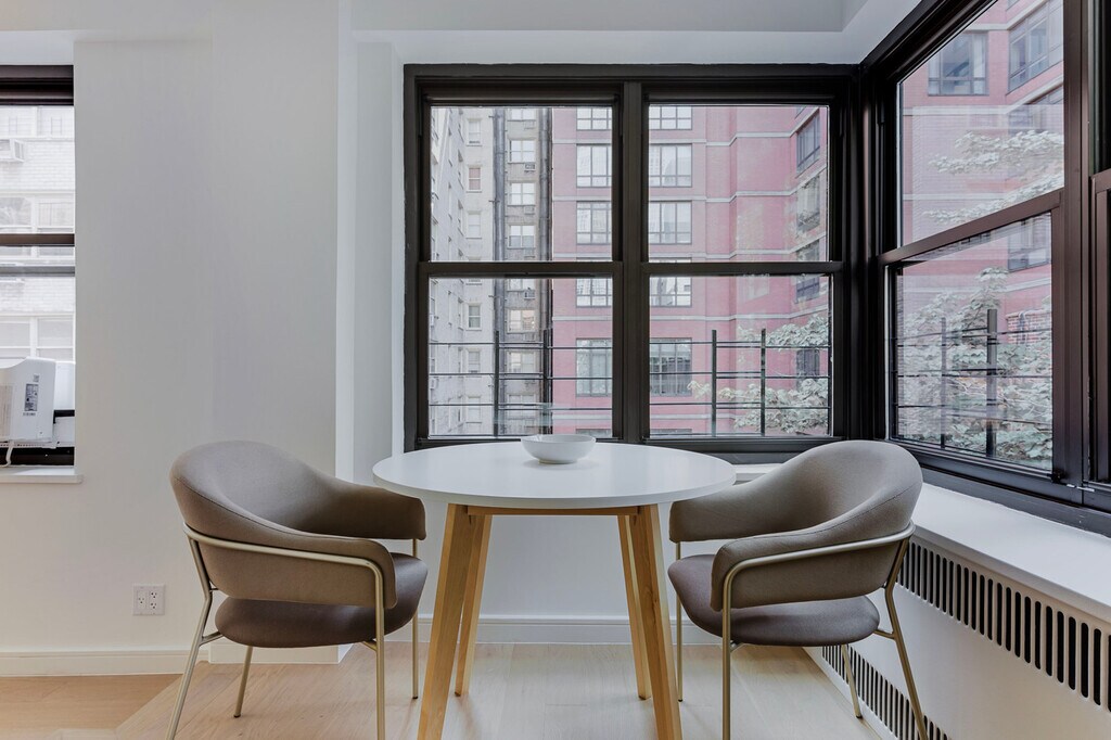 Similar space, but different These photos are of a similar space and style to this apartment. They’re intended to give you a sense of Blueground’s design style. Exact furniture and layout will be different. Be the first to rent! Show up and start living from day one in New York with this sophisticated one bedroom Blueground apartment. You’ll love coming home to this thoughtfully furnished, beautifully designed, and fully equipped Midtown East home. (ID #NYC1986) The advertised rate of $6,330/month is the lowest available price, based on a 12 month(s) stay with a move-in date of April 20, 2026. Rates vary depending on the duration of stay, season, and other parameters. For exact pricing and additional pricing components, please visit our website and enter your desired move-in and move-out dates. The rate is applicable when billed upfront; it can be higher if billed in multiple payments. Brokers are welcome to reach out. Were you looking for an unfurnished lease? Try Blueground instead and upgrade from unfurnished to furnished living: - Furnished at rates comparable to unfurnished - No setup or furniture costs - save thousands - Move-in ready - save time, just bring your suitcase Designed with you in mind As with any Blueground apartment, you’ll find a thoughtfully designed space complete with beautiful furniture and a fully equipped kitchen in this one bedroom property. And, thanks to our superior quality mattresses, luxury linens, and towels, you can relax knowing you’ll always feel comfortably at home. When you’re ready for some fun, you can take in the New York vibes or bring the entertainment to you with the premium wireless speaker or smart TV. This apartment also offers in-apartment laundry. Sleeping arrangements Queen Bed, 63in/160cm Amenities Building amenities unique to this one bedroom apartment include an on-site: - Doorman - Dryer - Elevator - Washing machine - Pets allowed Arrival and ongoing support The entire apartment is yours to enjoy! Throughout your stay, you’ll have access to our Client Experience team through the Blueground App. You can schedule additional cleanings, submit maintenance requests, and view our neighborhood recommendations with just a few taps. We’ll share all details upon confirmation of your stay. Ideally Located This furnished apartment is located in Midtown East. This bustling neighborhood is home to NYC landmarks like the Empire State Building, the United Nations' headquarters, and Grand Central Station. Midtown East is also home to a thriving dining scene, with everything from humble food carts selling hotdogs to white-tablecloth restaurants with multiple Michelin stars. There are also many cultural attractions, including the Museum of Modern Art, the lovely Japan Society, the historic Morgan Library, and more. Midtown East is also home to some incredible shopping, from the international flagship stores along Fifth Avenue to Bloomingdale's, one of the city's best-loved department stores. Other things to note Photos are from a similar property. This Blueground apartment has flexible lease options, allowing you to book it for one month, a year, or more. Pets are welcome, though weight limits and breed restrictions apply and may incur fees. Brokes CYOF. [SI]