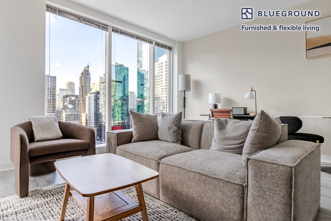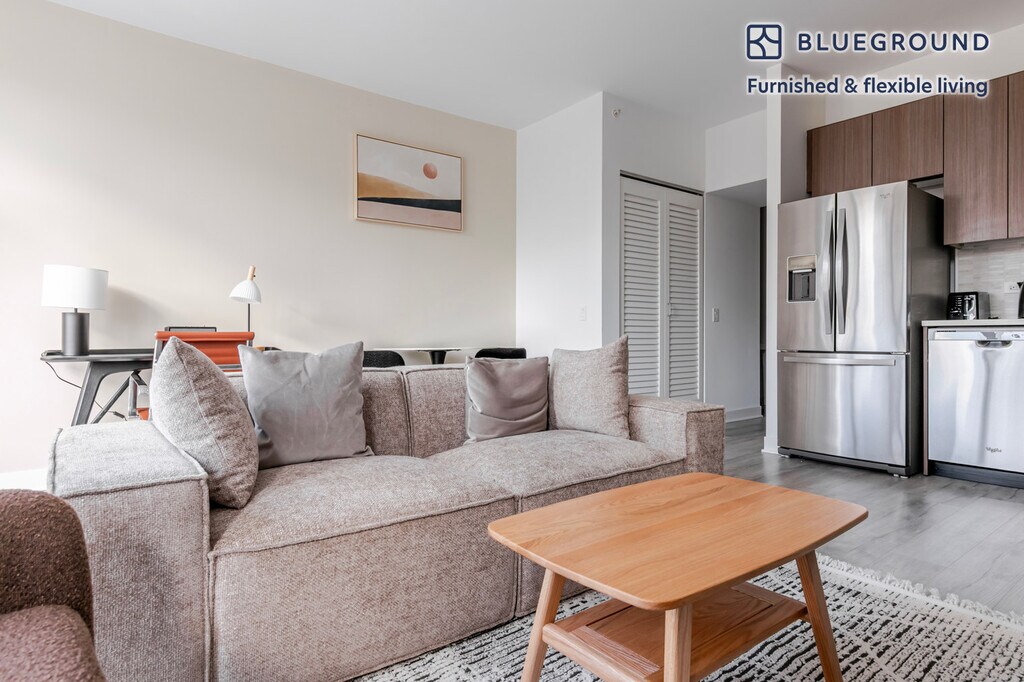 Discover the best of Chicago, with this one bedroom apartment in Streeterville. It’ll be easy to simply show up and start living in this furnished apartment with its fully equipped kitchen, living room, and our dedicated, on-the-ground support. (ID #CHI1419) The advertised rate of $2,830/month is the lowest available price, based on a 1 month(s) and 29 day(s) stay with a move-in date of February 4, 2026. If you’re looking for a 1-year stay, the rate is $3,350/month. Rates vary depending on the duration of stay, season, and other parameters. For exact pricing and additional pricing components, please visit our website and enter your desired move-in and move-out dates. The rate is applicable when billed upfront; it can be higher if billed in multiple payments. Brokers are welcome to reach out. Were you looking for an unfurnished lease? Try Blueground instead and upgrade from unfurnished to furnished living: - Furnished at rates comparable to unfurnished - No setup or furniture costs - save thousands - Move-in ready - save time, just bring your suitcase Designed with you in mind Thoughtfully designed with bespoke finishes, modern furnishings, and a fully equipped kitchen, you’ll enjoy that “I’m home” feeling with this Blueground apartment. Whether you’re lounging in your cozy living room streaming the latest and greatest entertainment on the smart TV or premium wireless speaker, or getting some well-earned rest on the superior quality mattress with luxury linens, you’ll fall in love with everything this Streeterville apartment has to offer. This apartment also offers in-apartment laundry. Sleeping arrangements Queen Bed, 63in/160cm Amenities Building amenities unique to this one bedroom apartment include an on-site: - Doorman - Dryer - Elevator - Swimming pool - Washing machine - Pets allowed Arrival and ongoing support The entire apartment is yours to enjoy! Throughout your stay, you’ll have access to our Client Experience team through the Blueground App. You can schedule additional cleanings, submit maintenance requests, and view our neighborhood recommendations with just a few taps. We’ll share all details upon confirmation of your stay. Ideally Located This furnished rental is located in Streeterville, only a 5 minute walk from The Loop. One of the fastest-developing neighborhoods in Chicago, Streeterville extends out into Lake Michigan and attracts a blend of young professionals, students, and tourists. A plethora of amenities and activities exist for every lifestyle. From Navy Pier activities to luxury shopping on Michigan Avenue, it is a walkable community with easy access to entertainment. Other things to note Building amenities may have an extra cost. This Blueground apartment has flexible lease options, allowing you to book it for one month, a year, or more. Pets are welcome, though weight limits and breed restrictions apply and may incur fees. We take great pride in ensuring every photo displayed is shot in our own units with our actual furnishings. That said, we regularly refresh our decor and furniture arrangement, which may differ from what’s pictured. Also note - This apartment is in close proximity to a fire/police station, so you can expect noise from time to time - This apartment's central location means it can be noisy at times - This is a guarded building equipped with a doorman/concierge at all times [SI]