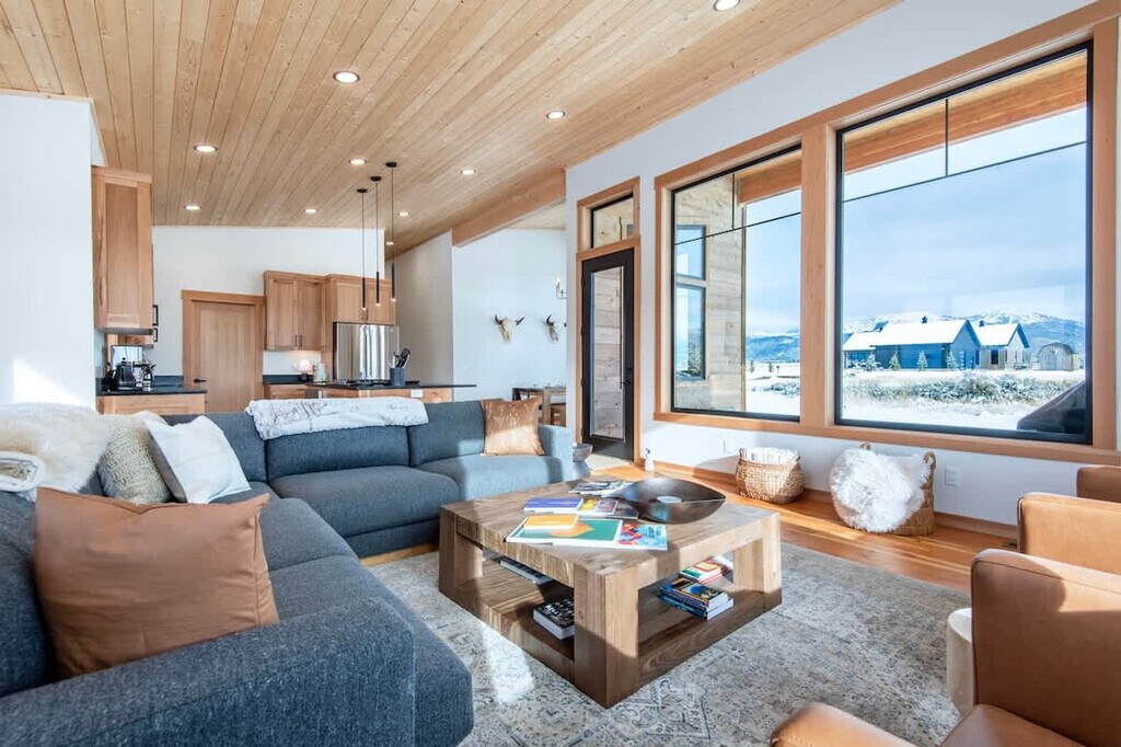 Imagine waking up to the sun rising over the Tetons, its golden rays spilling into every room of your brand-new dream retreat. Picture yourself sipping coffee on the patio, surrounded by the incredible beauty of Teton Valley’s "view corridor," just north of Driggs, Idaho. Known for offering the most breathtaking vistas in the region, this is more than a getaway—it’s where unforgettable memories begin. Built in 2024, this luxury home redefines what it means to relax, recharge, and explore. Every detail of this 4-bedroom retreat has been designed for comfort, convenience, and sheer enjoyment. Step into a home where modern design meets mountain charm. The open-concept living room and dining area are ideal for laughter-filled evenings, while the fully stocked kitchen makes whipping up gourmet meals a breeze. The floor-to-ceiling windows frame nature’s masterpiece, allowing you to watch the sun rise over the majestic Tetons while you sip your morning coffee and unwind as the sun sets over the Big Hole Mountains, painting the sky in hues of gold and crimson. Dine under the stars with your private propane BBQ, or sink into the hot tub and let the stress melt away. Your spacious patio is the perfect setting for unforgettable nights and tranquil mornings. There are two homes on the property. We primarily rent out the main home, but we can also rent out the main home and guest home as one rental if you have a larger group and need the space. Located in the heart of Teton Valley’s iconic view corridor, this home is your gateway to thrilling outdoor activities and serene natural beauty. From epic mountain biking on some of the world’s best trails just minutes from your door, to drifting through breathtaking scenery on a tranquil summer float on the Teton River, adventure awaits. Grand Targhee Resort is only 15 minutes away, offering hiking, horseback riding, and summer concerts. Charming Driggs is just 3 miles away, offering shopping, dining, and exploration in this quintessential mountain town. In winter, enjoy powder perfection at Grand Targhee, renowned for its light, deep snow and crowd-free runs, or tackle legendary slopes at Jackson Hole, just a scenic drive over Teton Pass. The number of people at the property should not exceed the maximum sleeping capacity. Quiet hours are from 9 pm to 8 am, and no events such as parties, large gatherings, or weddings are allowed. Smoking or vaping in the home or on the decks is prohibited, and an additional charge will be applied if any butts are found on the property. Please turn all exterior lights off at night to preserve the dark skies, drive slowly in the neighborhood, and keep all main entry doors locked when not occupied. A maximum of three licensed vehicles is allowed in the driveway and garages. No riding snow machines, dirt bikes, or ATVs in the subdivision or at the rental property, and no fireworks on the premises. Fines will apply for violations, including leaving garbage in the house or litter on the grounds, failure to disclose or clean up after pets, smoking in the house or garage, failure to follow house rules and respect posted signs, failure to follow check-out procedure, mistreatment of the hot tub, or violations of local laws. A minimum $500 fine will be imposed for smoking, vaping, or using marijuana in the house or garage, violation of house rules, posted signs, laws, or failure to vacate at check-out time. We believe in giving our guests the privacy to enjoy the home on their own, yet we have a team available 24/7 for any urgent needs. From our location, you’ll enjoy convenient access to the region’s top attractions, making it the perfect base for your adventures. Grand Targhee Resort is located 12 miles away, approximately a 20-minute drive, offering world-class skiing in winter and mountain biking and hiking in summer. Jackson Hole Mountain Resort is around 35 miles away, roughly a 50-minute drive, perfect for skiers and snowboarders of all levels. Grand Teton National Park is approximately 40 miles away, about a 1-hour drive, featuring breathtaking mountain views, abundant wildlife, and endless hiking opportunities. Yellowstone National Park (South Entrance) is roughly 90 miles away, about a 2-hour drive, boasting geothermal wonders and unparalleled wildlife viewing. Downtown Driggs, Idaho, is just 3 miles away, a quick 5-minute drive, offering small-town charm, local shops, and delicious dining options. Downtown Jackson, Wyoming, is approximately 35 miles away, about a 50-minute drive, with the iconic Town Square, boutique shops, and great restaurants.